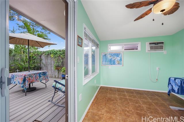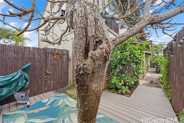 RARE PRIVATE YARD + BONUS 3RD BEDROOM/OFFICE NEAR THE BEACH Renovated corner-end townhouse in a boutique 7-unit community with a true single-family feel in Waialua. Features new LVP flooring, custom tile in baths and bonus room, 1.5 baths, A/C and ceiling fans in every room, allergy-friendly paint, and reverse osmosis water system. Fully fenced private yard with a brand-new Trex deck and private outdoor shower—perfect after the beach. Two blocks from Aweoweo Beach Park, one block to the bike / walking path, minutes to Waialua Elementary, and easy access to Schofield and Haleiwa Town. *No water damage during the March 2026 flash flood events. HIGHLIGHTS: Renovated: New LVP & custom tile in baths/bonus room. Comfort: A/C + ceiling fans in every room; 1.5 baths. Fresh & Healthy: Allergy-friendly paint + reverse osmosis filtration. Flex Space: Bonus room for office or 3rd bed. Location: 2 blocks to Aweoweo Beach; 1 block to bike path; near Waialua Elementary. Local Vibes: Waialua Sugar Mill—Molino, The Den, MeleMele Bakery. Commute: Fast access to Schofield/Honolulu. Move-in ready with rare privacy this close to the sand!
