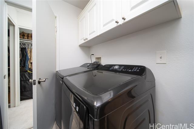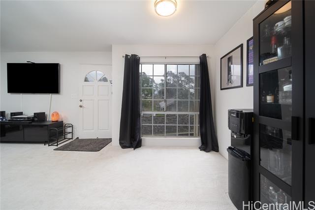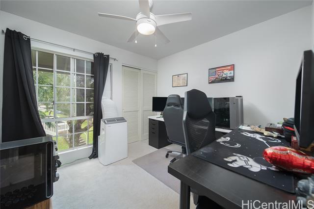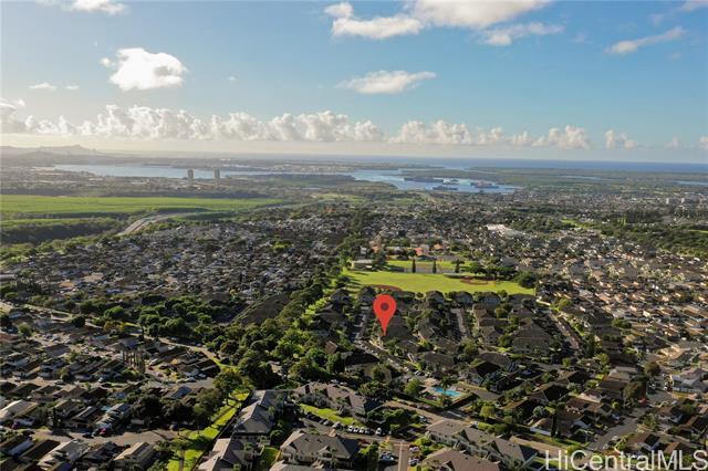 Welcome to this bright and welcoming townhome in the desirable Royal Palm community. This beautifully updated 2-bedroom, 1-bath residence is move-in ready and was thoughtfully remodeled in 2020. The living area is filled with natural light from oversized windows and a sliding glass door that opens to a peaceful lanai overlooking lush garden views, perfect for morning coffee or unwinding at the end of the day. The kitchen offers stainless steel appliances, attractive cabinetry, and a dedicated dining space for easy everyday living. Additional features include a full-size washer and dryer, a covered parking stall, and access to the community pool and recreation area. Ideally located near Costco, Mililani Recreation Center, Waikele Outlets, parks, shopping, dining, and entertainment, this home offers comfort, convenience, and a wonderful island lifestyle in a highly sought-after area.