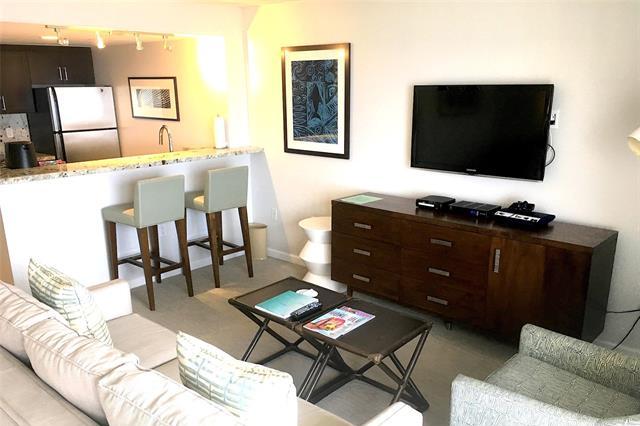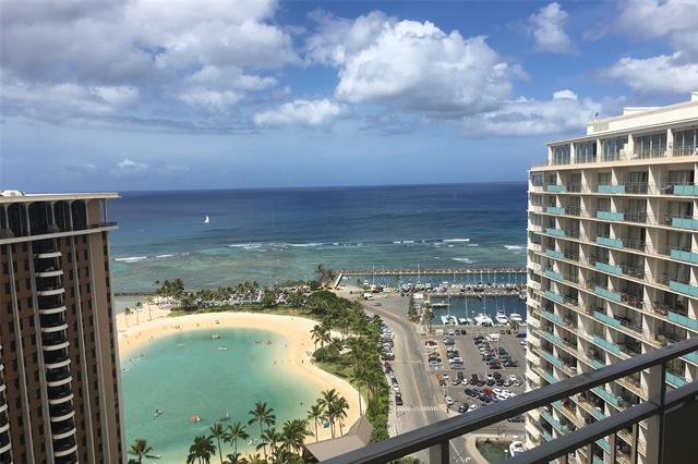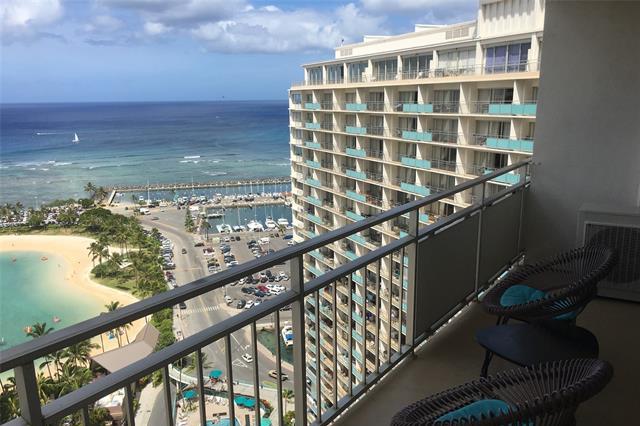 Ideal property for both investment and owner use! Higher floor unit, which totally renovated in 2014 and has been managed by Ilikai Hotel and Luxury Suites as hotel condo. This 500 square foot unit is furnished with upscale appliances and modern fixtures that exude the style and comfort you would expect to find in a luxury hotel suite, well maintained and generate good income. Special features include Kitchen equipped with stainless steel appliances, designer bathroom with granite countertops and tiled showers, 40-inch flat screen televisions, and split AC. You can enjoy sweeping and dramatic views of the Duku Kahanamoku Lagoon from this spacious 120 square foot lanai.