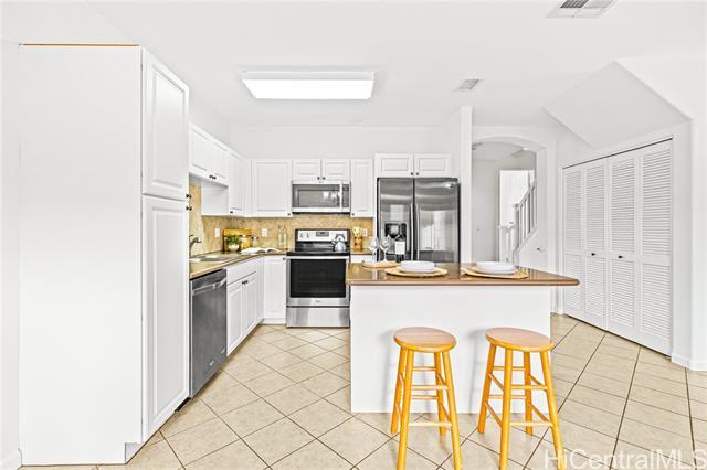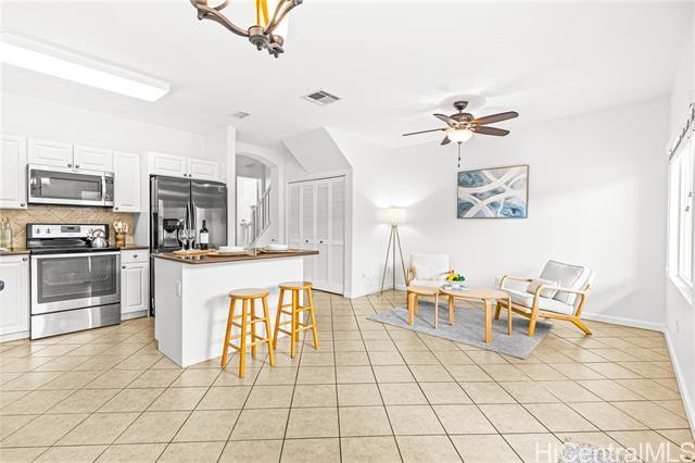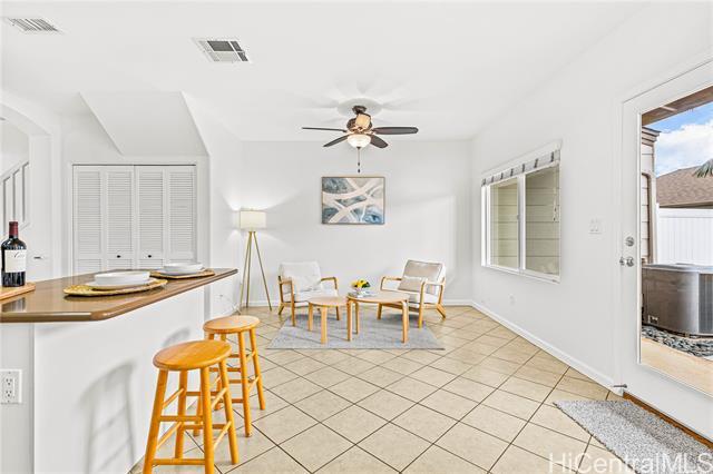 Welcome home to this beautifully-maintained 2-bedroom, 2.5-bath with large bonus den townhome in the highly desirable Town Homes at Fairways Edge. Both bedrooms offer en-suite bathrooms, creating a comfortable and functional layout, while the den provides a flexible space perfect for a home office, guest area, or additional living space. New carpet on the stairs adds a refreshed feel. Enjoy your own private courtyard, perfect for morning coffee or weekend gatherings, and the convenience of a 2-car detached garage. Experience a sense of effortless serenity in this lush, park-like community, where every day feels like a getaway with a resort-style pool, jacuzzi and BBQ cabanas just steps from your door. Located just minutes from Wai Kai and close to beaches, dining, shopping, and schools, you’ll love the easygoing Ewa Beach lifestyle this home offers!