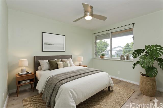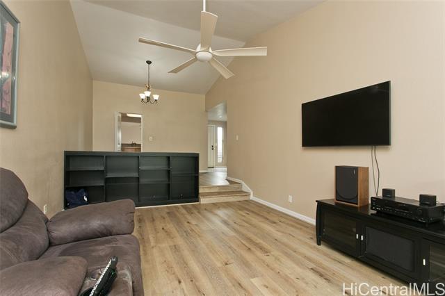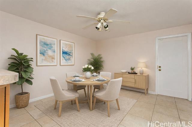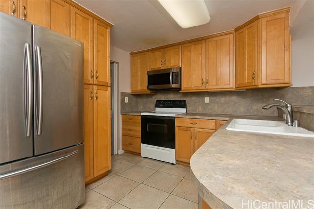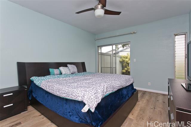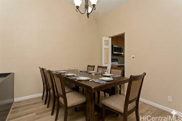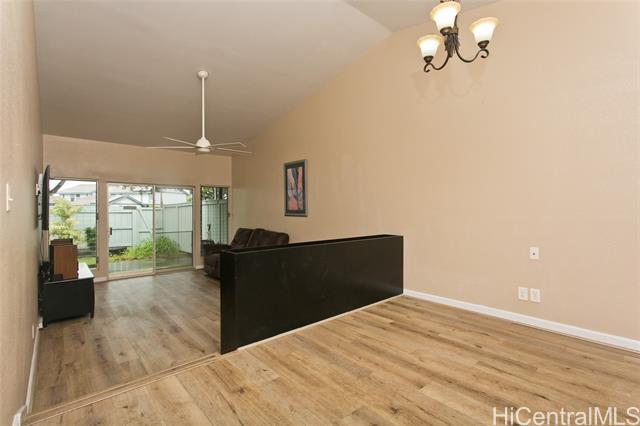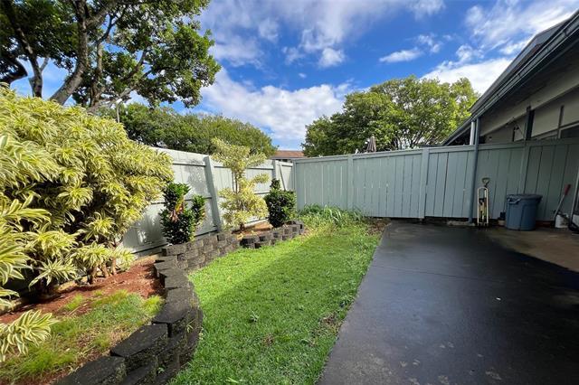 Discover this conveniently located townhouse in the heart of Mililani. This fantastic opportunity includes the highly desirable convenience of an enclosed one-car garage and a reserved open parking stall directly in front of your entrance. Enjoy charming outdoor living with a front porch and a private, fenced back courtyard. The interior offers a functional layout with two separate areas for kitchen table and dining table, and a dedicated laundry room. The main floor features a spacious primary bedroom with its own entrance to the backyard. This probate sale will convey "as-is." The seller's disclosure statement will be completed by a non-occupant heir, and buyers should be prepared to perform their own comprehensive due diligence.