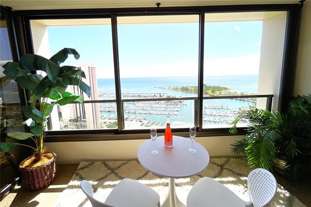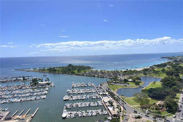 Experience elevated island living from this high-floor residence at Yacht Harbor Towers, featuring breathtaking panoramic views of the Pacific Ocean, Ala Wai Yacht Harbor, Magic Island, and the coastline stretching beyond. The spacious layout is enhanced by an expansive lanai spanning the living area and bedrooms, creating seamless indoor-outdoor living-perfect for relaxing or entertaining while taking in the ever-changing ocean views and cooling trade winds. Ideally positioned at the gateway to Waikiki and directly across from Ala Moana Center, with close proximity to Ala Moana Beach Park, Ward Village, and world-class dining and nightlife. Resort-style amenities include a heated pool, jacuzzi, tennis and pickleball courts, BBQ areas, and 24-hour security. A rare opportunity to own a premier view residence in one of Honolulu's most desirable locations-this is island living at its finest. High-floor positioning offers exceptional privacy and a true sense of retreat above it all. Stunning sightlines capture unforgettable sunsets and ever-changing ocean vistas. Opportunities like this are rare. Sunday Open House 3/29, 2PM to 5PM.