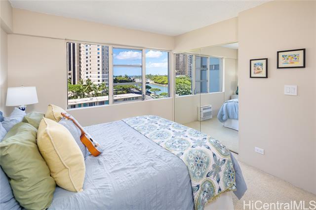 Check out this spacious home in Residential Waikiki with Ocean views and located just one block from the beach! It's Located in an extraordinarily well managed, boutique building that has curb appeal, unique architectural features, is 100% insured, has a reasonable maintenance fee, impressive reserve funds, no loans, and no assessments. The HOA Fee even includes cable tv and internet! Apartment 606 is a corner unit with gorgeous water views, a spacious great room and oversized large glass doors. This home has an updated kitchen, newer appliances, two ac's, tiled lanais and has been freshly painted throughout. The primary bedroom features an ensuite bath and is privately positioned in the back of the home. Marina Towers is located on a restricted road fronting the canal and it's amenities include a Heated Salt pool, BBQ, attractive Recreation Area, Workout Area, Locked Bicycle, Surfboard and Storage rooms as well as a car wash and an attentive resident manager. An assigned parking stall and storage space is included in the sale. Seller is offering a $10,000. credit at closing to be used as buyer decides. Book your showing today!