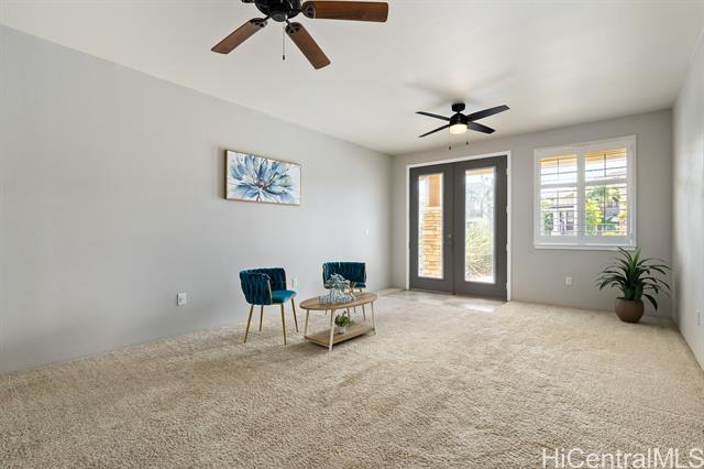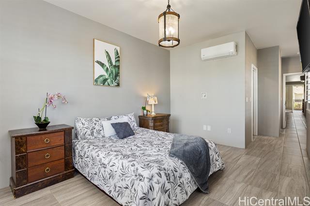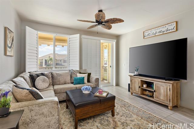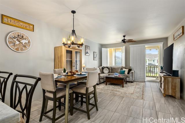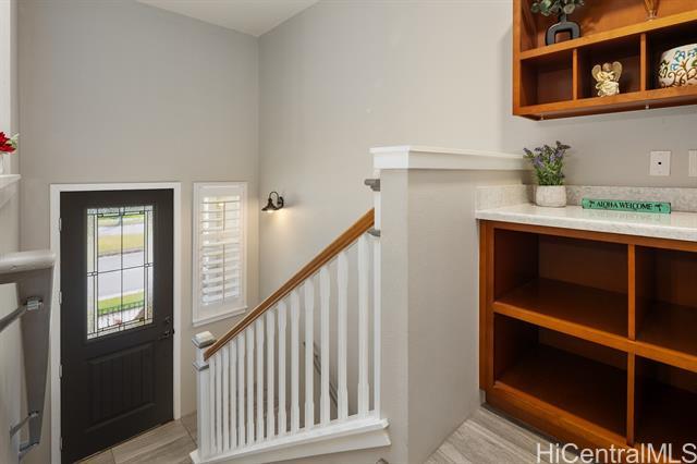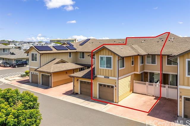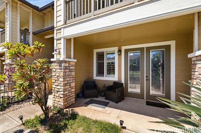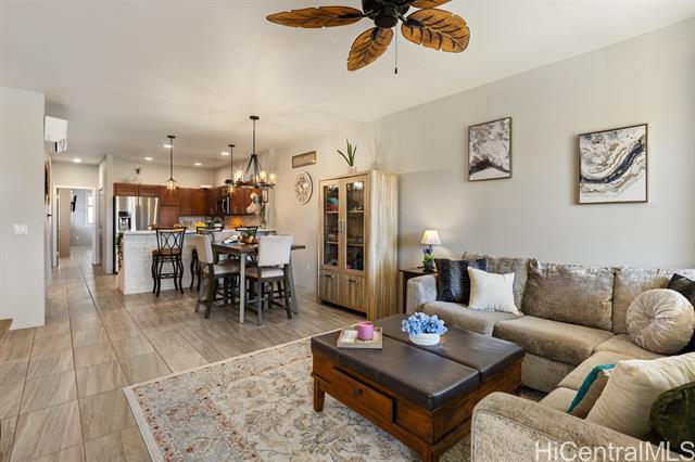 This turn-key flex property in a live-work-play community offers a rare mixed-use opportunity, ideal for both residential living and business use. Designed for versatility, this home features a separate ground-level entry into your "flex" space, perfect for a home-based business, retail space, office, or guest suite with a separate bedroom, full bath, lanai/yard space, and its own dedicated parking. The main living is on the second floor, with 2 bedrooms, 2 full bathrooms, washer/dryer and it's own covered lanai. The kitchen is thoughtfully upgraded with quartz Silestone countertops, stainless steel appliances, backsplash, and a stylish tiled accent peninsula wall. Plantation shutters throughout and custom lighting adds a refined touch, while split AC units provide comfort year-round. The flex area on the first level can be blocked off for privacy, but there's also stairs connecting it to the second level for those seeking extra space to live and entertain. Additional highlights include a 1 car garage for additional security and storage, and a total of 3 additional deeded parking stalls. This is a potential short sale, and if so, will be subject to lender approval.