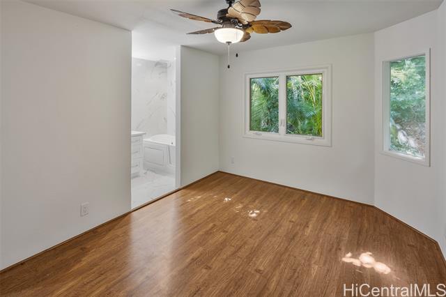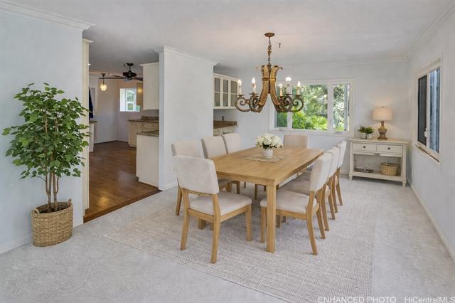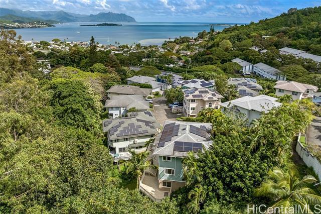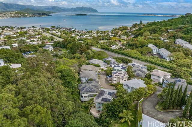 Approximately 3,100 square feet house in Kaneohe offering prime accessibility to nearby shopping and beaches. The home features three bedrooms, each with an en-suite bathroom, providing privacy and comfort. The open floor plan allows for flexible living, with a designated flex room that can be utilized as a home office, hobby space, or additional living area. The property boasts stunning ocean views, showcasing the natural beauty of the surrounding area. Additionally, the home offers picturesque Kaneohe Bay and Ko'olau views, creating a serene and peaceful atmosphere. The convenient location of this property makes it an ideal choice for commuters, with easy access to various amenities, transportation options, and the H-3. Properties in Shangri La don't come around often, so come see it while you can! Maintenance fee/mon $545.81 Reserve: $64.19 (cover capital improvements for new Shangri la sign). Maintenance Fee covers: Water, sewer, common elements, refuse, external insurance, cable and internet w/ Spectrum.