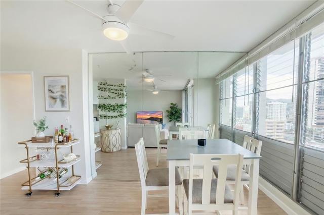 Welcome to Village Maluhia! This beautifully renovated corner unit features the largest 2-bedroom floor plan in the building, offering nearly 200 sq. ft. more than other two-bedroom units, with a total of 898 sq. ft. and two private lanais. Thoughtfully renovated in 2025 with a sleek and modern aesthetic. Upgrades include: Full Kitchen w/ new stainless steel appliances, Bathrooms, Cabinets/Counters, Removal of Popcorn Ceiling, High End Blinds, and more! Enjoy breathtaking views of Diamond Head, the ocean, and mountains from both lanais—an exclusive feature unique to this unit. Additional highlights include a new touchscreen in-unit washer and dryer, assigned covered parking, and access to resort-style amenities such as a pool, gym, sauna, and clubhouse. Ideally located in the heart of Makiki, just minutes from Ala Moana, Kaka‘ako, Downtown Honolulu, and Waikiki, you’ll have convenient access to world-class shopping, dining, entertainment, as well as nearby parks, hiking trails, and beaches.