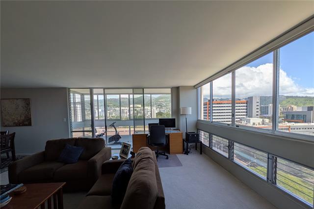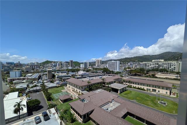Location, Location, Location. The Banyan Tree Plaza is centrally located near the University of Hawaii, major private schools and medical facilities. The corner end unit has panoramic views looking at the Central Union Church grounds, scenic mountains and Shriners Hospital to sunset views towards the West. This 2 bedroom 2 bath 2 covered parking unit was renovated a few years ago with new kitchen and bathroom counter tops and cabinets. This unit has one of the largest living areas in the building with 1556 SF. The building has great amenities like a resident manager's office, secured parking, security, 20 guest parking, a salt water pool, BBQs and more! The building has completed the repiping process and the owner has paid off the special assessment.