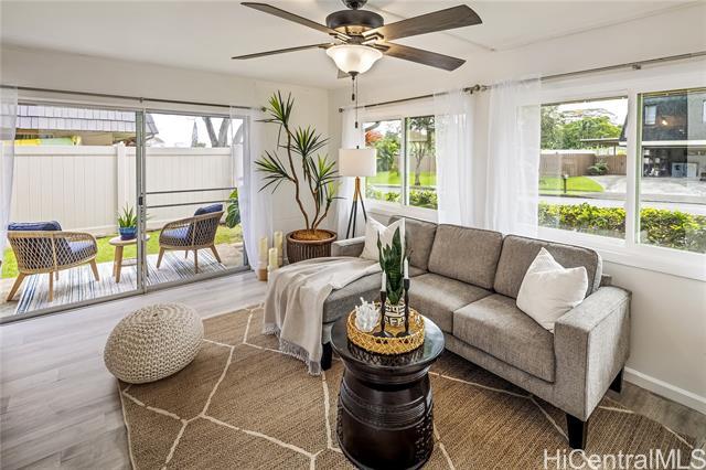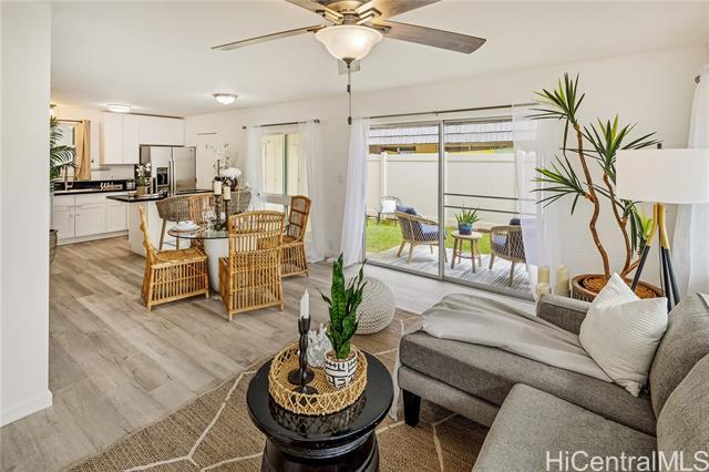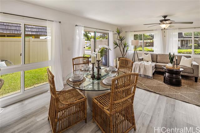 THE WAIT IS OVER! Welcome home to this highly sought-after Haiku Villa townhome, tucked into the lush foothills of Kane'ohe and framed by breathtaking Ko'olau Mountain views…where the pace slows down and everyday life feels more peaceful. Thoughtfully laid out for easy island living, this home feels open and inviting, with a fully enclosed backyard / patio - perfect for pets, relaxing at home, or entertaining family and friends. Surrounded by greenery and cooled by tradewinds, this residence offers the ideal balance of lifestyle and location, blending comfort and convenience with easy access to schools, parks, beaches, golf, shopping, dining, and quick commuter routes via H-3, Likelike, and Pali just minutes away. Rarely available in Haiku Villa, this is your chance to own in one of Kane'ohe’s most desirable residential pockets and embrace a Windward lifestyle that feels calm, connected, and truly special!