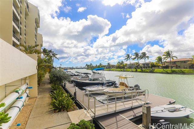 Discover affordable marina-front living in this spacious, remodeled, 2- bedroom, 2-bath condominium! Enjoy the luxury of a boat dock at no extra cost. The stylish kitchen boasts newer a copper sink, stainless steel appliances, granite counters, and tile flooring, all open to breathtaking views. With excellent airflow, plus central A/C for those warm Kona days, the great room flows seamlessly into a covered lanai - like an extra living space with a gorgeous panorama. The primary bedroom is generously sized and offers lanai access, while the primary bath awaits your final touch. Guests will adore the charming, fully remodeled guest bathroom which complements the guest bedroom's ample size and closet space. Residents also enjoy a wealth of amenities-pool, spa, barbecue, pickleball, tennis, golf, a social room and a large fitness center. Plus the Esplanade is nestled in the prestigious International Baccalaureate Kaiser School District, with shopping, Starbuck's, Safeway, Costco and restaurants just minutes away!