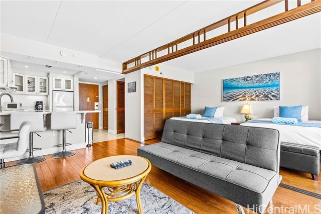 This beautifully remodeled one bedroom unit at the world-famous Ilikai features an open-concept layout with a large lanai with gorgeous panoramic views of the Ala Wai Harbor, Pacific Ocean, and beyond. The thoughtfully upgraded interior showcases a renovated kitchen and bathroom in 2016, along with abundant cabinetry, providing both modern style and exceptional storage rarely found in similar units. Enjoy resort-style amenities including two swimming pools, on-site dining, retail shops, and inviting lounge areas. Whether you're seeking a primary residence, vacation retreat, or income-producing legal short term rental, this move-in-ready unit offers a rare opportunity to own in one of Honolulu’s most recognizable and desirable buildings. This unit also has no union restriction on the cleaning and therefore has more flexibility for an owner to use an outside management company. The Ilikai Hotel & Luxury Suites is at the gateway to Waikiki, just moments from world-famous Waikiki Beach, the Hilton Lagoon and the Friday night fireworks, Ala Moana Beach Park, and exceptional shopping and dining, the iconic Ilikai offers the ultimate island lifestyle.
