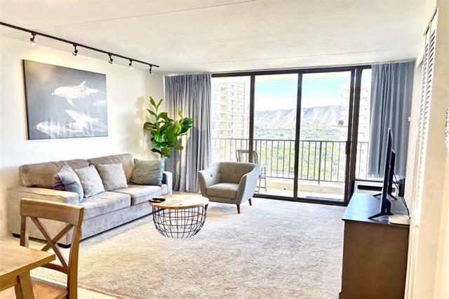 Welcome to your slice of island investment gold at the iconic Waikiki Banyan. This beautifully updated 1-bedroom, 1-bath corner unit blends comfort, style, & income potential in one irresistible package. Positioned just one block from the world-famous Waikiki Beach, this property is perfectly tailored for short-term rental success. Step inside & you’re greeted by travertine flooring that flows seamlessly through the dining & kitchen area, complemented by quartz countertops, upgraded cabinetry, a tasteful tile backsplash that gives the kitchen a clean, modern edge. The upscale bathroom travertine tiled shower is creating a spa-like retreat after a day in the sun. What truly sets this unit apart? Ocean views from kitchen & bedroom—a rare & valuable feature that keeps guests coming back & booking full. As a large corner unit, you’ll enjoy added privacy, natural light, airy feel. Offered fully furnished & turnkey for short-term rental, this condo is ready to generate income from day 1. Even better, it includes parking, a highly sought-after perk in Waikiki. Whether you're looking invest or secure a personal getaway that pays for itself, this Gem delivers the full island experience.