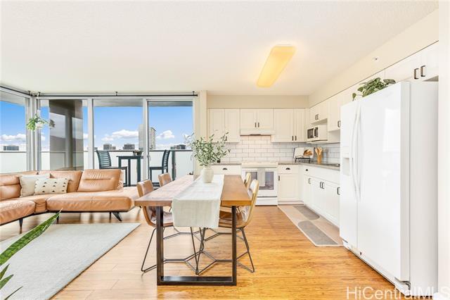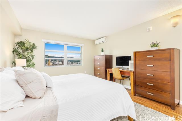Highly desirable corner end unit with expansive views and a wraparound lanai at 801 South Street! This 2-bedroom, 2-bathroom residence features a spacious layout with sweeping mountain, city, and ocean views. Recently refreshed with new paint and updates, the home offers a clean, modern feel throughout. The larger primary bedroom provides added comfort, while the second bedroom is ideal for a home office or guest/children’s room. Conveniently located just outside of Kaka?ako, 801 South sits at the crossroads of Ala Moana and Downtown Honolulu, offering easy access to major freeway entrances while maintaining a quiet, tucked-away setting. A well-managed building with low maintenance fees makes this a fantastic opportunity for both homeowners and investors!