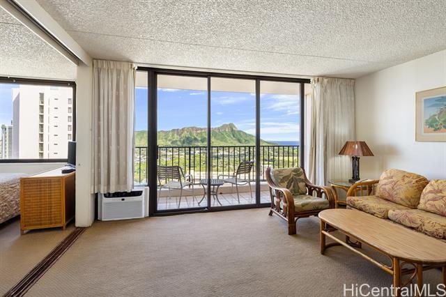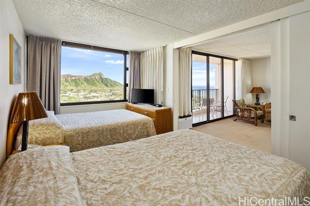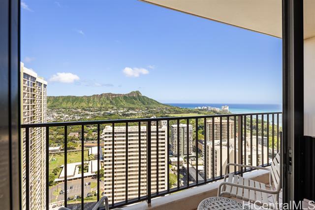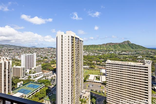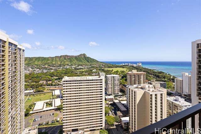 Experience one of the most desirable views in Waikiki Banyan from this high-floor unit, featuring breathtaking panoramic views of iconic Diamond Head, the lush greenery of Kapiolani Park, and the brilliant blue Pacific Ocean, an unforgettable island backdrop. The 6th floor recreation deck is currently undergoing a major renovation and is scheduled to reopen in late May, offering brand-new amenities including a swimming pool, BBQ areas, and courts for tennis and basket ball. Best of all, the renovation costs have already been budgeted, and no special assessment is anticipated. This unit is currently enrolled in the Aston hotel rental program, allowing for seamless short-term rental operation when not in personal use, ideal for both investors and part-time residents. Maintenance fees are reasonable and include electricity, water, hot water, cable TV, and internet, providing excellent value and convenience. Don’t miss this rare opportunity to own a premier view unit in the heart of Waikiki!