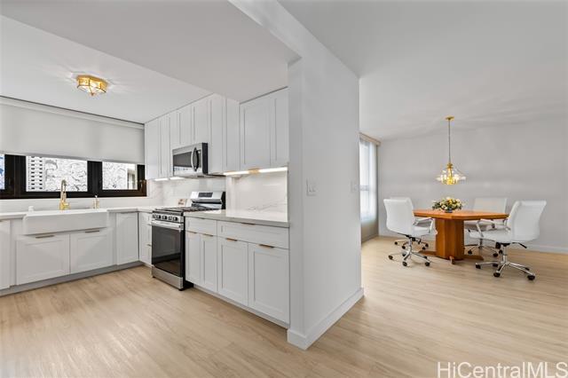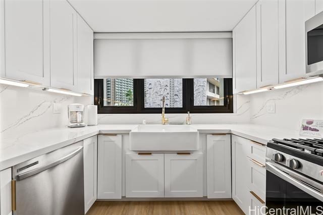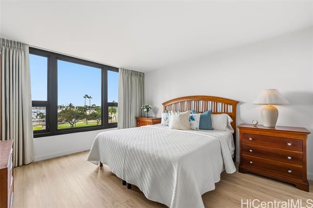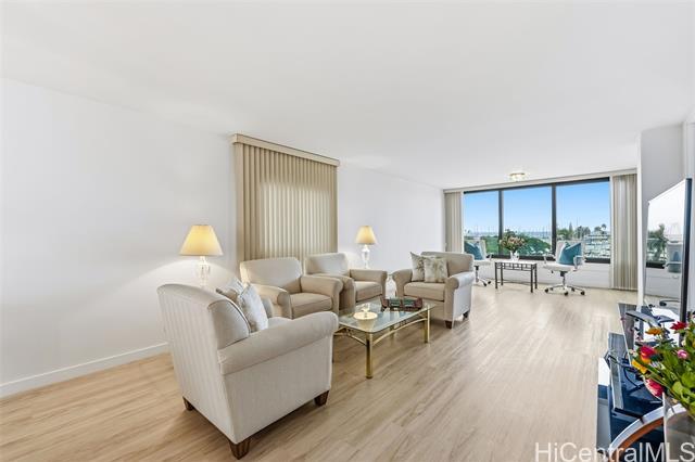 Experience unbeatable convenience and beautiful yacht harbor and ocean views from this prime residence across from Ala Moana Shopping Center, at the gateway to Waikiki. This spacious 2-bedroom, 2-bath home offers a thoughtful floor plan with the primary suite privately separated from the guest bedroom. Renovated in 2022, it showcases modern finishes throughout, including quartz countertops, upgraded cabinetry, stainless steel appliances, refreshed bathrooms with LED mirrors, and durable luxury vinyl plank flooring. An in-unit washer/dryer, covered parking, and 24-hour security provide everyday ease. Resort-style amenities include a heated pool, tennis/pickleball court, recreation area, storage, secured entry, security patrol, and on-site resident manager. Maintenance fees cover electricity, central AC, gas, water, sewer, cable, internet, common area upkeep, and insurance for common areas—including flood and hurricane protection. Perfectly located across from Ala Moana Beach Park and steps from world-class dining, shopping, beaches, and the energy of Waikiki, this residence offers the ultimate in Ala Moana convenience and lifestyle.