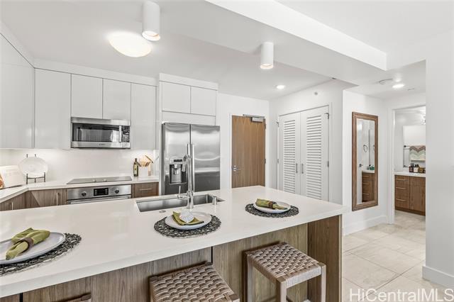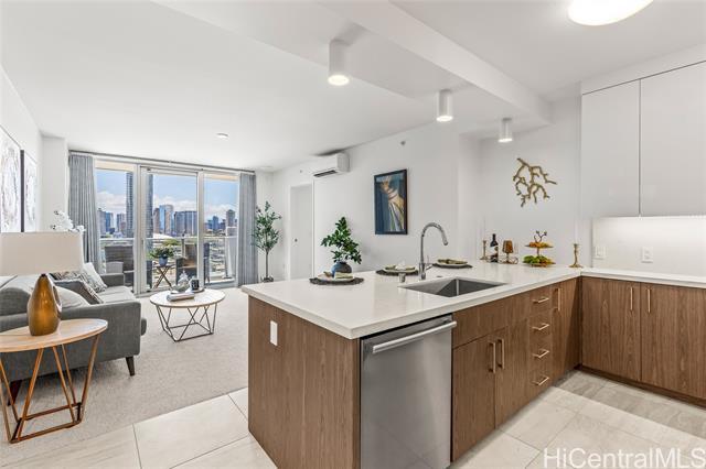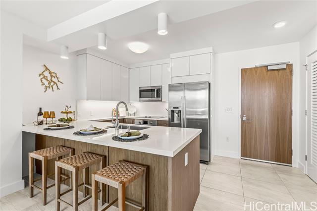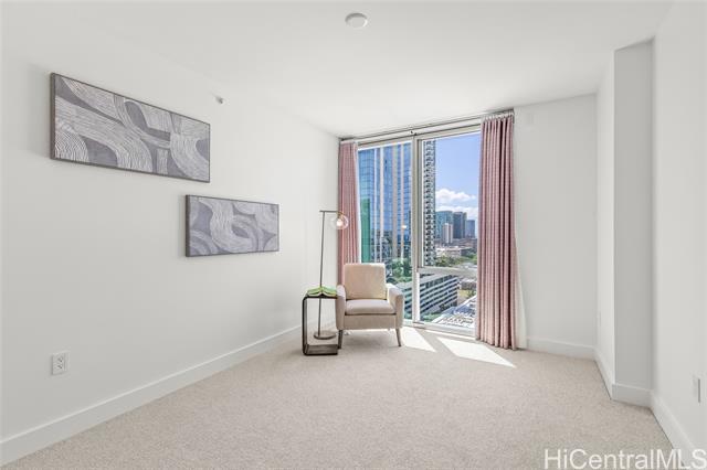 Pre-registration & appt. required for Open House visits. Luxury living at Azure Ala Moana, Honolulu's premier residential tower built in 2021. This beautifully upgraded Unit 1510 features custom drapery and elegant crystal lighting fixtures, enhancing the modern design and refined ambiance. Enjoy desirable partial ocean and coastline views, sparkling city lights, and mountain vistas from this residence. Offering a rare 30-day minimum rental, this unit provides excellent flexibility for extended stays, professionals and relocations clients. Residents enjoy resort-style amenities including on- site guest suites, state of the arty fitness center, private theater, party room. California closet system and storage. Ideally located just seconds to minutes from Ala Moana Center, beached, dining, medical facilities, and everything Honolulu has to offer - combining luxury, comfort, and exceptional convenience. Hurricane Insurance is in place. 2 pets 25lbs and less.