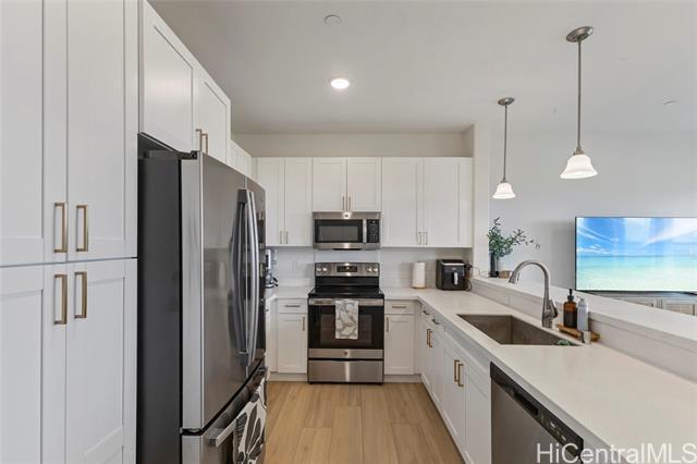 Welcome to one of the largest floor plans in the Walea complex at Koa Ridge — a beautifully maintained 3 bed / 2.5 bath townhouse with a spacious loft perfect for a second family room, home office, or play space. Built less than 4 years ago this home still feels brand new, and at over 1,500 interior square feet it feels like a single family home. The 2-car garage, modern finishes, and thoughtful layout make it move-in ready from day one. Location doesn't get much better than this — you're right down the road from shops and restaurants, just around the corner from Costco, and right off the freeway for an easy commute anywhere on the island. Here's the best part: you're getting the same floor plan as the brand new Walea units — for over $70,000 less. Call your agent today to set up a showing! You won't want to miss on this one.