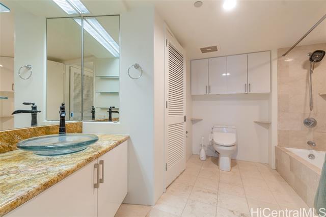 Priced to sell! Rarely available and highly sought after double unit featuring 2 large primary suites in the prestigious Hawaiki Tower. Beautiful corner end unit with spectacular ocean & city views from every room with the floor to ceiling windows that let in lots of natural light. Enjoy lots of space with this open floorplan totaling over 2000 SF. THREE parking stalls which all have storage cabinets above each stall. Upgrades include new flooring throughout the living, dining, kitchen and bedrooms, interior is freshly painted, and new cabinet doors in the kitchen and bath. Relish in luxury amenities including the heated pool, whirlpool, tennis court, putting green, play area, library & more or head to the sandy beaches at Ala Moana Beach Park across the street. Roam the neighborhood full of shopping, restaurants, coffee shops, Ala Moana Shopping Center, Ward Center and world-famous Waikiki just a mile away. Pet-friendly building known for low maintenance fees. One or more photos have been enhanced.