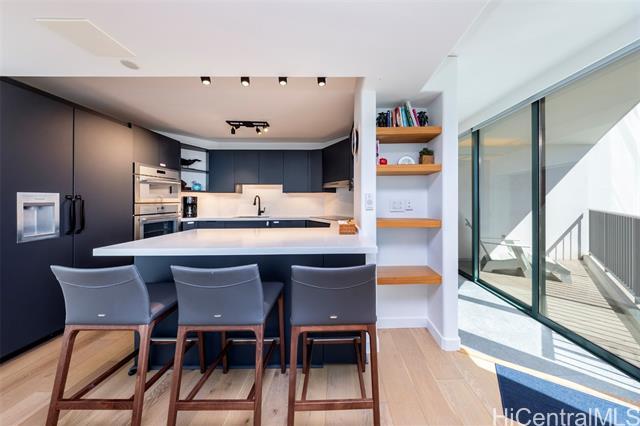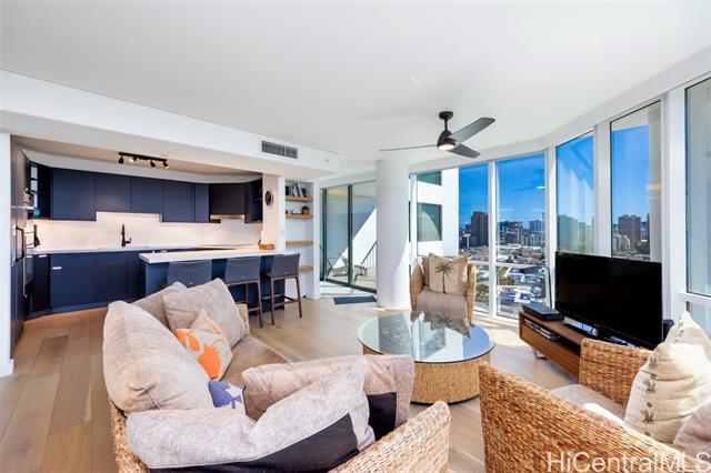 Discover Hawaiki Tower #2309, an exceptional luxury residence situated in the sought-after '09' stack, where panoramic floor-to-ceiling windows draw in views of Diamond Head, Ala Moana Beach Park, and the Pacific Ocean. Meticulously upgraded, this high-end 2-bedroom, 2-bath front-corner residence includes a new luxury kitchen with built-in bar seating, two fully upgraded luxury bathrooms, upgraded flooring, lighting, closet systems, roller shades throughout, bespoke built-ins, high-end fixtures, appliances, upgraded plumbing, electrical, and other upgrades. Well-kept amenities include a grand 3-story lobby area, large infinity-edge pool, tennis court, multiple barbecue areas, kid's play area, and more. Hawaiki Tower's superb location puts beaches, shops, restaurants, entertainment and more just outside your doorstep. Rarely will you find a residence of this caliber, in this coveted location, offered with such exquisite upgrades. Don't miss this extraordinary opportunity to own a piece of paradise at Hawaiki Tower #2309.