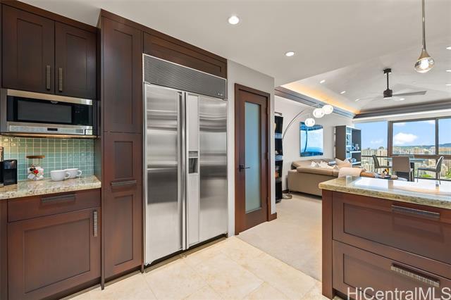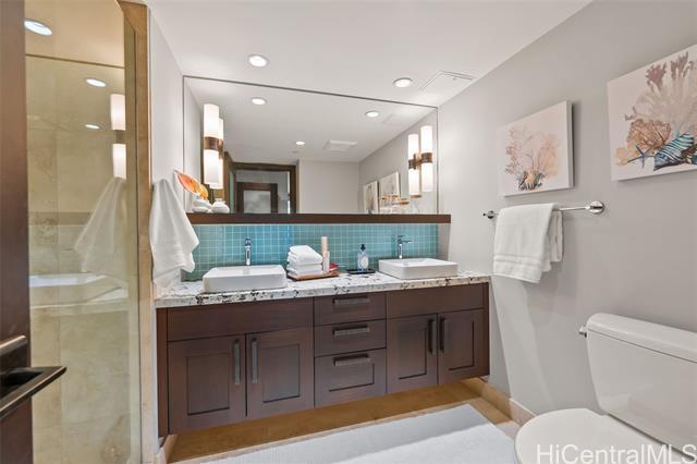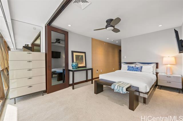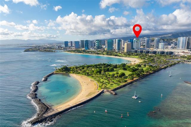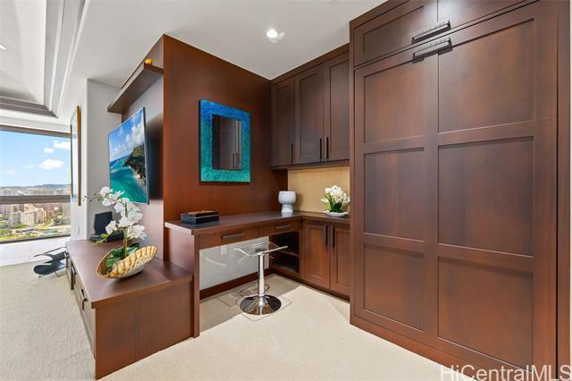 A Rare Opportunity for Elevated Island Living – 44th-Floor Residence in Hawaiki Towers. Experience luxury in this exquisitely renovated 2-bedroom, 2-bathroom residence perched on the 44th floor of the coveted Hawaiki Towers. Expansive floor-to-ceiling windows in living and bedrooms. This stunning home offers panoramic views of Magic Island, Ala Moana Beach Park, sunsets over Diamond Head, and the Koolau slopes. This fully furnished and redesigned (2006/2014) unit offers the perfect blend of luxury, convenience, and breathtaking views. Two secured covered parking stalls and storage, this home provides unbeatable comfort and functionality. Custom high-end finishes, including sapele wood cabinetry, gourmet kitchen, and a primary suite to enhance the refined living experience. Resort-style amenities make this property truly exceptional. The infinity-edge pool & spa offer a perfect place to relax, and the pickleball & tennis courts offer a great way to stay active. Located across from Ala Moana Center and just steps from the beach, this unit provides an unbeatable island lifestyle, where everything you need is right at your doorstep. See Video & 3D Tour Owner is Licensed HI Realtor