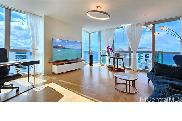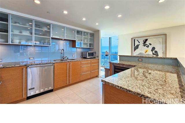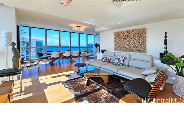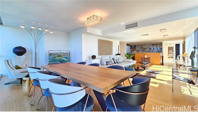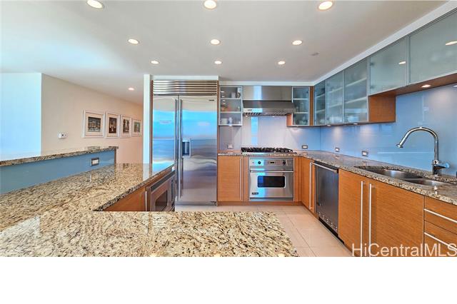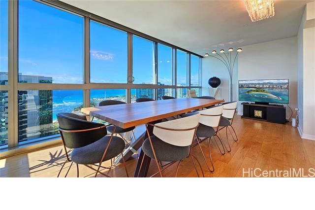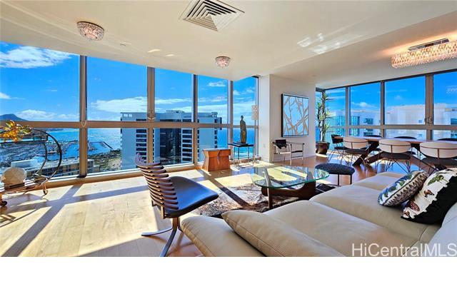 Spectacular Diamond Head, Ocean and Panoramic Views of Ala Moana Beach from this luxurious Penthouse at Koolani, Honolulu's premier condo known for grand lobby, superb amenities, and luxurious quality of building. Rare opportunity for the most highly desired penthouse 4610 unit with glass walls framing magnificent sweeping ocean vistas spanning Sunrise to Sunset. Spacious floor plan includes a large living and dining room, gourmet kitchen, three bedrooms plus a huge deck (378 sq. ft.). Resort style amenities including a resort-like pool, whirlpool spa, tennis court and barbeque cabanas. One of the best locations on Oahu conveniently located in East Kakaako close to world famous Ala Moana Shopping Center and beautiful Ala Moana Beach park.