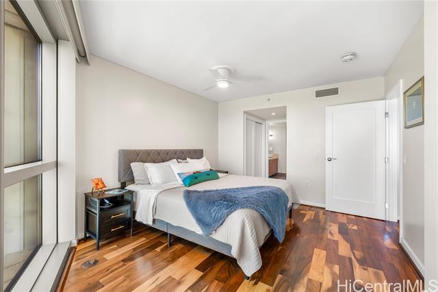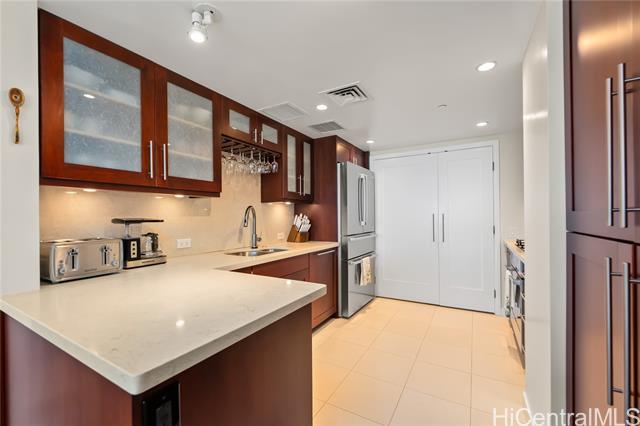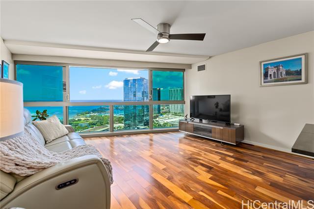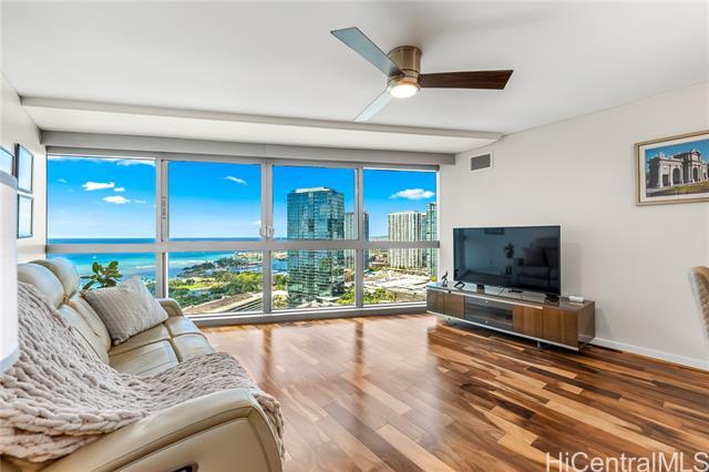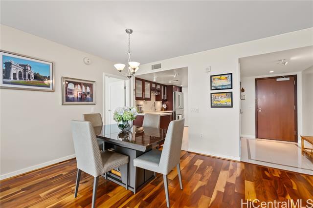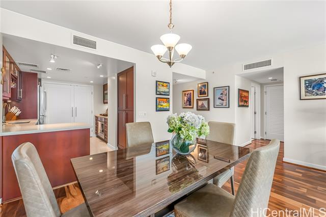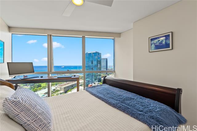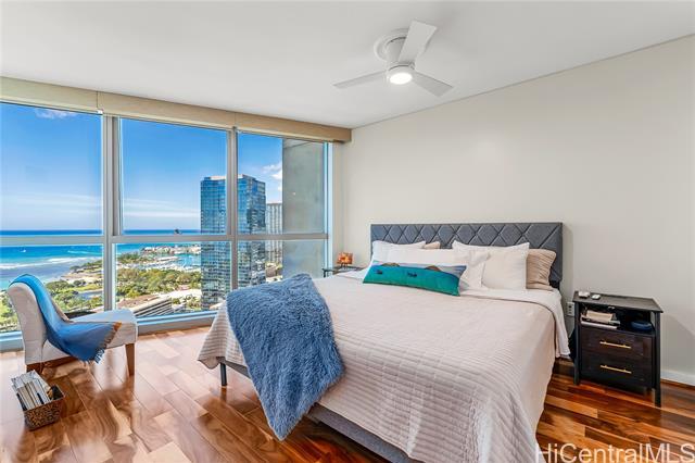 Experience the best of Kakaako urban living in this stunning 2-bedroom, 2-bathroom luxury residence at prestigious Koolani.Spanning 1,162 sq. ft., this home features floor-to-ceiling windows capturing breathtaking ocean,sunset & city views. Positioned in Kakaako’s coveted "second row," steps from Ala Moana Center & Beach Park,Whole Foods & everything Ward Village has to offer.Meticulously maintained & updated,this home boasts engineered hardwood flooring & Design 5 motorized shades throughout.The chef-inspired kitchen features updated quartz countertops,soft-close cabinetry,premium Bosch stainless-steel appliances, gas cooktop,wine frig & generous sized pantry. This residence comes w 2 side-by-side parking stalls.Koolani offers a premier resort lifestyle with an expansive recreation deck featuring a saltwater pool,hot tub,BBQ cabanas,putting green, tennis & pickleball courts & on-site dog park. Amenities include private theater, guest suite & parking,meeting,exercise,game & billiard rooms,business center,EV charging station & car wash area.Enjoy peace of mind with a 24-hour secured lobby,front desk & security.Discover a sophisticated sanctuary that defines modern Honolulu luxury.