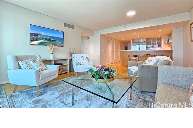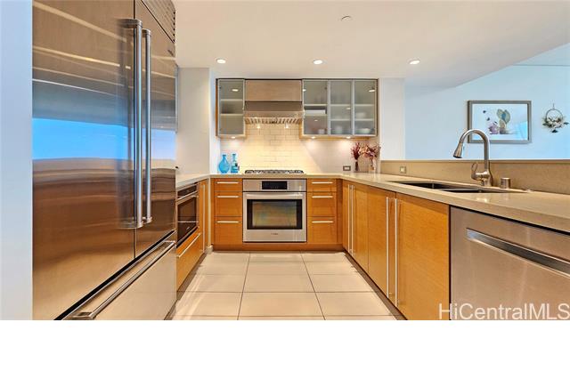 BEST 3 Bedroom 2 Bath Value IN KAKAAKO! Experience Luxury living in most desirable location where all the action is. Wonderful place to live & enjoy life. Excellent condition w/extensive upgrades throughout. Wood flooring and 100% wool carpet. Living room shutters. Roll down shades. The modem kitchen is appointed with Quartz counter tops. Top of the line appliances. Sub-Zero refrigerator, Bosch oven, Bosch gas cooktop, Bosch Drawer Microwave & Bosch dishwasher. Full size LG Washer & Dryer. 2 Washlet-equipped toilets. Owner maintained and took care of the unit in immaculate condition. Shows pride of ownership. Spacious open floor plan with a bright living area that flows to a lanai, perfect for relaxing and taking in the views and fresh Island breezes. Two side-by-side parking stalls on 3rd floor same as lobby level. Great amenities include heated salt water pool plus whirlpool, two tennis courts, putting green, BBQ area and dog park. Pet friendly bldg. Large Party room, small meeting room. Conference room, theater room, billiards room, guest suite & car washing area. Close to beach parks, shopping malls, theaters, Foodland Farms, Whole Foods & restaurants.
