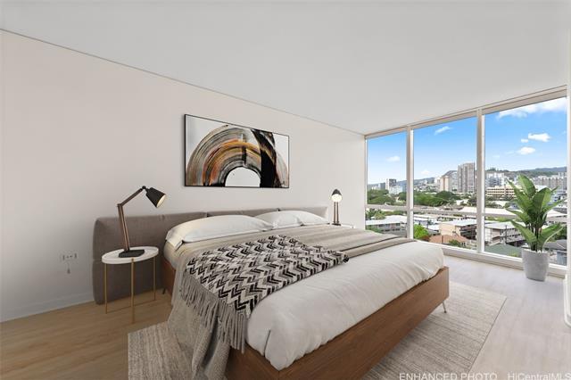 Beautifully maintained & spacious 2-bedroom, 2-bath residence in the Moana Pacific East Tower. Positioned on the preferred cool side of the building , this unit offers floor-to-ceiling windows that fill the home with natural light and showcase city and mountain views. Features include an open floor plan, central AC, vinyl flooring, granite countertops, and a recently upgraded bathroom. Enjoy resort-style amenities such as a fitness center, 24-hr security , putting greens, tennis courts, meeting room, theater, and BBQ areas. Ideally located near Ala Moana Center, Salt Kaka'ako, and Magic Island - this urban retreat offers the perfect balance of comfort, convenience, and contemporary island living. 2 photos have been virtually enhanced.