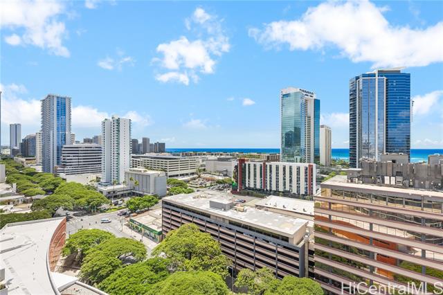 Welcome to Moana Pacific, one of Honolulu’s most desirable condominium residences in the heart of Kaka'ako. This spacious 2-bed + den, 2-bath unit on the 20th floor just overlooks the nearby buildings and offers sweeping city, mountain, & ocean views from floor-to-ceiling windows that let in lots of natural light. The open floor plan features a den which can be used as an office, play room, or 3rd bedroom, a modern kitchen with granite countertops & stainless steel appliances, a large primary suite with private ensuite bathroom, & central AC to keep you cool year round. Seller is also offering a $10,000 credit to buyer for new flooring of their choice. 2 side by side parking stalls add convenience, perfect for owner occupants & investors alike. Moana Pacific is a secure, pet-friendly building with resort-style amenities including a swimming pool, hot tub, tennis courts, putting green, fitness center, movie theater, BBQ areas, & 24-hour security. Perfectly located near Ala Moana Center, Ward Village, restaurants, shopping, & the beach—this residence offers the ultimate urban island lifestyle. Don't miss this opportunity!