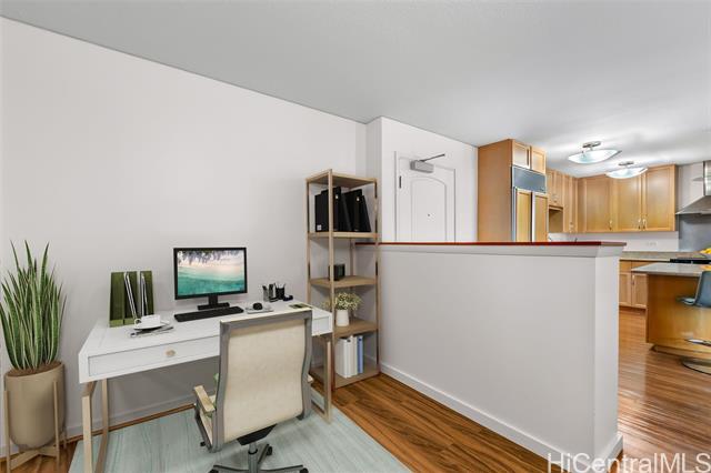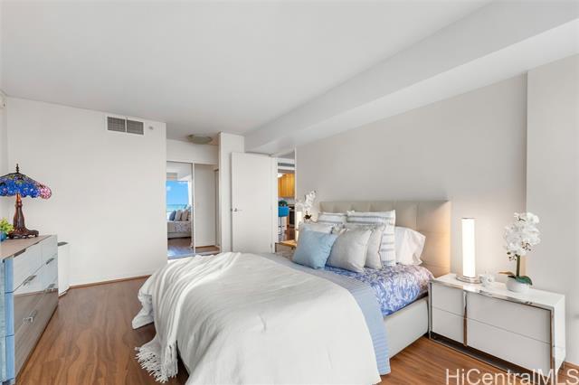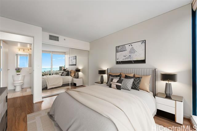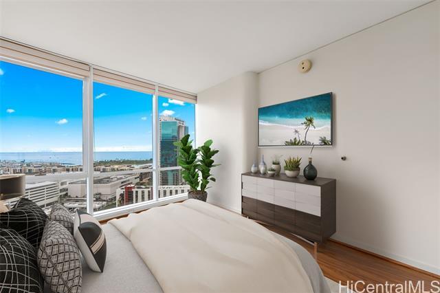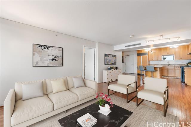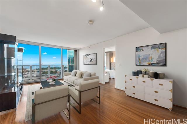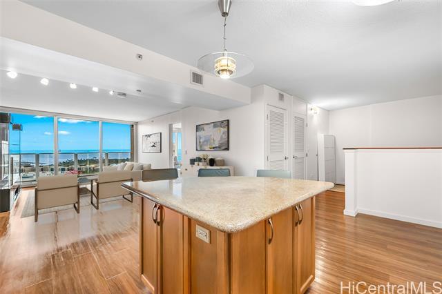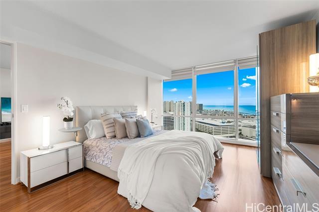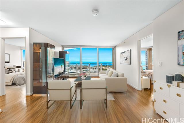 High-floor luxury in Moana Pacific’s coveted 05 stack West Tower, captivates with panoramic ocean views from every room! This rarely lived-in 2 Bed, 2 Bath + versatile Den (easily a 3rd bedroom) boasts spacious living areas, engineered hardwood floors, granite countertops, stainless steel appliances (brand new washer/dryer + new dishwasher) updated vanity w/ quartz top, modern fixtures, central AC, & floor-to-ceiling windows flooding the interiors w/ Hawaii’s natural light. Step out onto your private lanai & enjoy the gorgeous ocean views. 2 side-by-side parking stalls provide ultimate convenience. Resort-style amenities include 24-hr security, swimming pool, tennis/pickleball courts, golf driving cages & putting green, fitness center, BBQ cabanas, private theater, kids’ playground, & abundant guest parking. Centrally located near Ala Moana Center—Hawaii’s largest open-air shopping destination—Ala Moana Beach Park with easy access to surfing, swimming, & walking paths, + Ward Village & Kaka‘ako for acclaimed dining, boutique shopping, & farmers markets. Pet-friendly (under 25 lbs). An elegant primary residence or luxurious vacation retreat in Honolulu’s premier urban enclave!