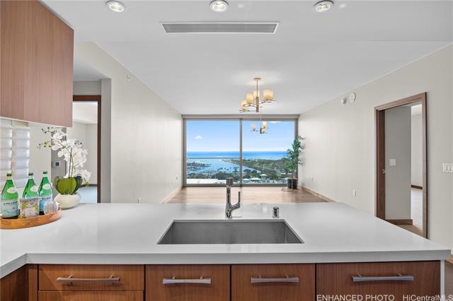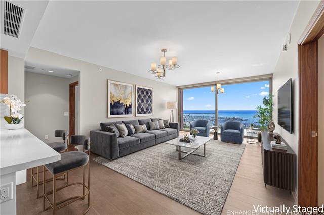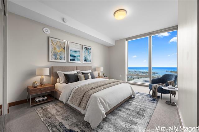 Experience refined island living in this beautifully designed 2-bedroom, 2-bath residence at ONE Ala Moana. The thoughtfully planned layout places the living area at the center, with bedrooms positioned on opposite sides for privacy and balance. Located on the 17th floor, the residence overlooks Ala Moana Beach Park and Magic Island, offering ocean views from every room. Floor-to-ceiling windows bring in natural light while framing sweeping views of the coastline and greenery below. Set adjacent to the renowned Ala Moana Shopping Center, ONE Ala Moana offers a rare sense of privacy, creating the feeling of stepping into a peaceful oasis despite its central location. The residence includes two side-by-side parking stalls and convenient access within the building. Residents enjoy a full-service amenity floor located on the sixth level, featuring a resort-style pool, jacuzzi, spa, fitness center with locker rooms, barbecue cabanas, private dining, outdoor lounge areas, chef’s kitchen, wine tasting room, movie theater, game room, putting green, jogging path, private shopping salon, dog park, guest suites, jacuzzi and kids' room.