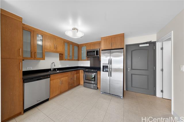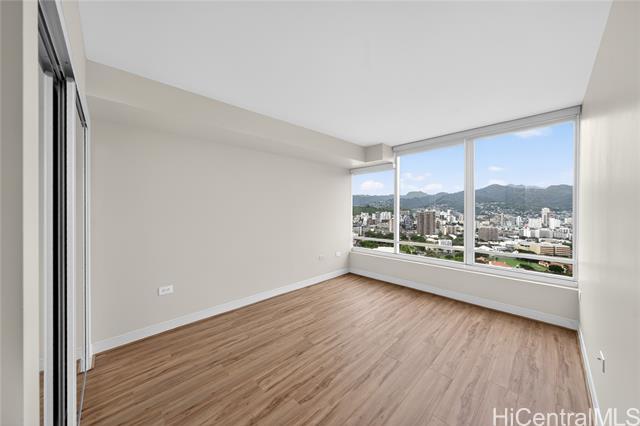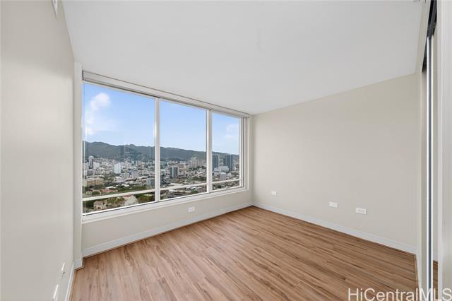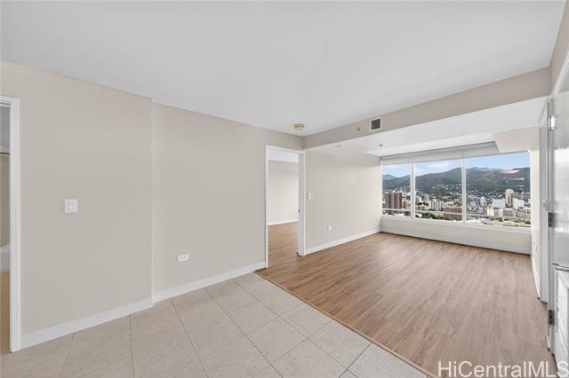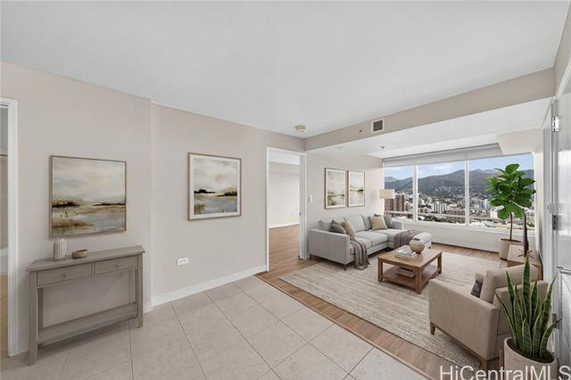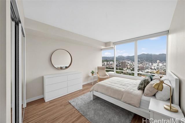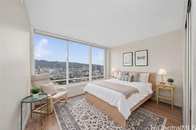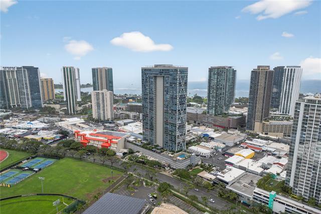 Enjoy breathtaking, unobstructed mountain views from the cool, preferred side of the building in the heart of vibrant Kaka'ako. This spacious 2-bedroom, 2-bath residence features an efficient, well-designed floor plan with no wasted space, an open-concept kitchen, and separated bedrooms for added privacy. Interior highlights include stainless steel appliances, natural stone countertops, tile flooring, and central A/C for year-round comfort. The unit comes with two tandem parking stalls. Residents enjoy exceptional amenities including 24-hour security, BBQ areas, a pool, jacuzzi, sauna, two private theaters, a party room with catering kitchen, fire pits, a fully equipped fitness center, and a dog park. Convenience is at your doorstep with Blue Tree Cafe, Doraku Sushi, and Chai's Island Bistro located downstairs. Just steps away is Whole Foods Market and the vibrant Ward Village, offering an array of shops, dining, and entertainment options. You're also minutes from Ala Moana Beach Park, Ala Moana Center, the Neal S. Blaisdell Center, and Waikiki. Live in the center of it all in one of Honolulu's most sought-after neighborhoods. Property to be sold As-Is.