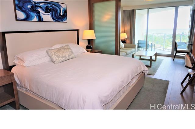 Enjoy luxury living at The Ritz-Carlton Residences Waikiki! This fully furnished large studio unit is in Diamond Head Tower with beautiful ocean view over Fort DeRussy Park. It has hardwood flooring throughout, washer and dryer, kitchen, double sink in bathroom and floor to ceiling windows. World-class amenities include valet parking, concierge services, infinity pool, Ritz spa, fitness center, restaurants and more. One or more photos have been enhanced.