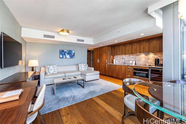 Island-Style Luxury meets 5-Star Resort Resort Living at the Ritz-Carlton Residences Waikiki. Located in the newer Diamond Head Tower 2 completed in 2018, this 1 bedroom, 2 full bath end-unit enjoys stunning 180-degree views of the Pacific Ocean, partial Diamond Head, Ala Wai Canal, and Ko'olau Mountains. Enter to find a contemporary floor plan combining living, kitchen, and dining spaces. A private lanai just off the main living area is the perfect place to enjoy morning sunrises with views of paradise. The bedroom suite also features direct Diamond Head and Ocean views, and features a true resort ensuite bathroom with separate deep soaking tub and walk-in shower. Centrally located in Waikiki, fine dining, high-end shopping, sandy beaches, stretching coastlines, and water activities are just minutes away. A Lifestyle of Luxury awaits at the Ritz. This property is an ADA-compliant unit.