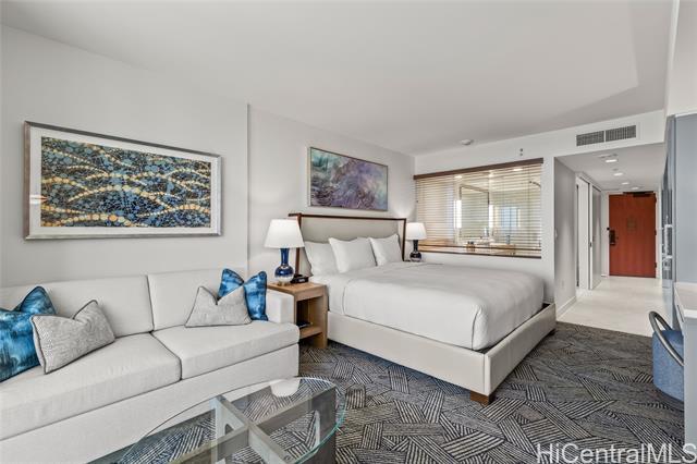 Enjoy luxury living at The Ritz-Carlton Residences Waikiki Beach. This Ewa Tower studio residence has been renovated and comes fully furnished with linens, kitchenware, upscale appliances, marble bathroom walls and countertops and washer dryer. Resort-style amenities feature two sparkling pools, a modern fitness center, concierge, and valet services, plus a popular deli/cafe. Easy access to hundreds of restaurants and events in Waikiki. Unit is currently not in hotel pool.