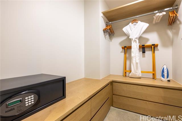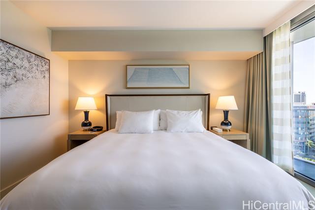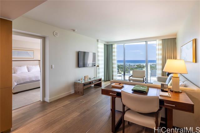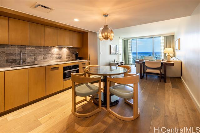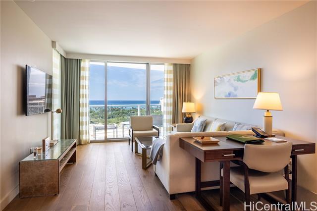 Rare owner-use-only 1-bedroom residence at The Ritz-Carlton Residences, Waikiki. Located on the 16th floor, this beautifully maintained unit offers ocean views and a front-row vantage point for events and parades along Kalakaua Avenue. The bathroom features an upgraded glass partition between the vanity and shower for enhanced comfort and usability. The spacious layout includes a king bed plus a sofa bed, along with a full kitchen and in-unit washer and dryer. Storage and valet services are also available for added convenience. This residence has never participated in the hotel rental program, preserving its exceptional condition since completion. Seller will cover the in-unit PEX plumbing pipe repair and access panel installation.
