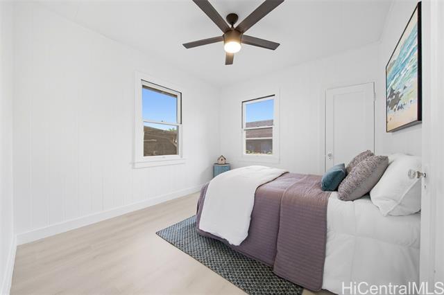 Beautifully upgraded SFH in peaceful, tranquil Wahiawa! This cozy 2 bedroom property is the perfect blend of contemporary finishes and classic home comforts, conveniently located just off California Ave, tucked behind Wahiawa District Park. Tastefully updated in 2025, you'll be greeted with bright shades of cream and white in the flexible open living space, complete with new luxury vinyl plank flooring, and fresh paint! Enter the kitchen where large quartz countertops and new stainless steel kitchen appliances await a home chef to bring them to life. You'll love the covered patio - a flexible outdoor space that can be used for everything from barbecuing with the family to hopscotch with the neighborhood keiki. Just a few minutes drive from Wahiawa Botanical Garden, Wahiawa Queens Medical, and Leilehua High School, this is a diamond of a find, ready for a new owner to call home!