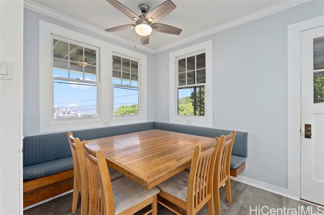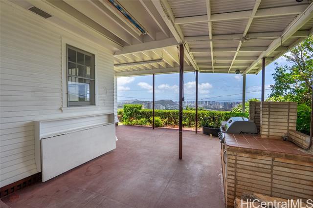 Beautiful ocean and city views, cool breezes, and a vintage home filled with character and lots of space! This house features large rooms with high ceilings, beautifully preserved wood floors, and timeless architectural details that reflect quality craftsmanship and a classic sense of style. The updated kitchen seamlessly blends traditional charm with modern functionality, while the large covered patio—with its built-in BBQ station—is perfect for relaxed gatherings and outdoor entertainment. While there's room to make it your own, the home’s solid structure and well-maintained features offer an ideal canvas for thoughtful updates. This is a rare chance to create your dream home in one of the Honolulu’s most convenient view locations!