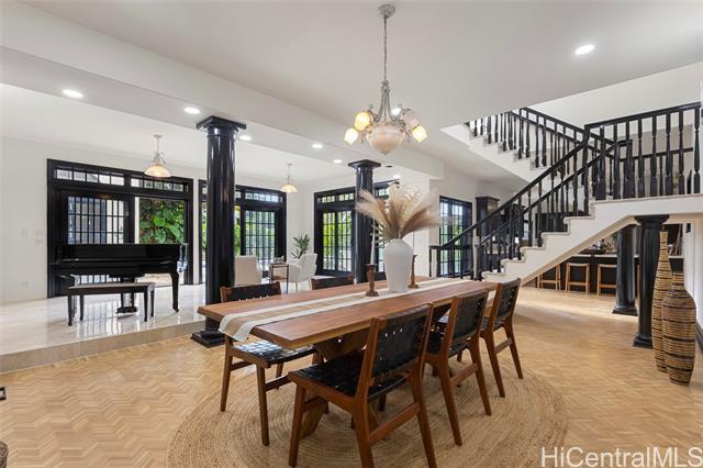 First Open House 11/9 /2025. 2:00 pm — 5:00 pm. First Time On the Market !!! Conveniently located near Kahala Mall, this beautiful property sits on a 12,117 approx sqft lot with a spacious 3,860 approx sqft interior. On the market for the very first time, the home showcases high ceilings, open living spaces, and a refined design throughout. The first floor offers a guest suite, bonus room, and an oversized laundry room. A dramatic staircase connects the first and second floors with an elegant open-to-above design, enhancing the sense of space while inviting an abundance of natural light in the home. The upstairs primary suite features high ceilings and a luxurious layout, while the additional bedrooms are designed with a peaceful ambiance, offering comfort and privacy. Surrounded by mature trees and lush tropical landscaping, this residence enjoys a rare sense of an exclusive setting while still being on a main street. A truly unique opportunity in the highly desirable Kahala neighborhood.