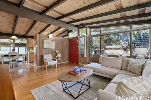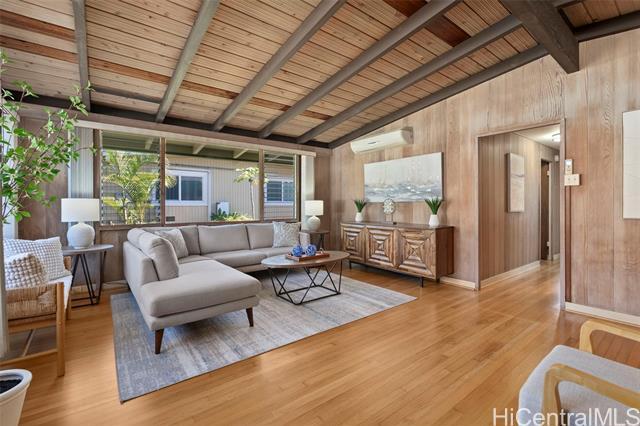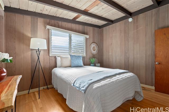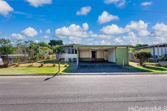 NEW LISTING! Gorgeous, move-in-ready 3 bedroom, 1.5 bath home near the lake in Wahiawa. This classic kamaaina charmer sits on a peaceful side street and is being offered for the first time. Set on a prime mostly level lot, the home has been lovingly maintained and features beautiful original hardwood floors and redwood walls. A spacious extension adds flexibility for a family room, home office, or entertaining space. Recent improvements include a freshly painted exterior, serviced split AC units, updated fixtures, newer washer and 9-year-old roof. The property also offers large storage areas in the carport and plenty of grassy yard space for pets and children. Enjoy cool breezes, quiet surroundings, and convenient access to Wahiawa town, restaurants, parks, schools, and Schofield. Do not miss one of the best values in Wahiawa!
