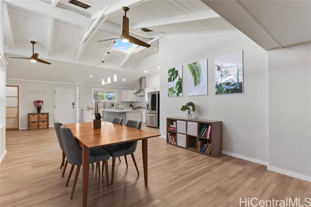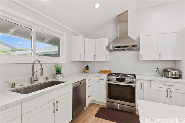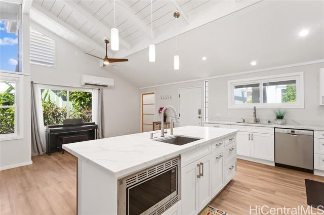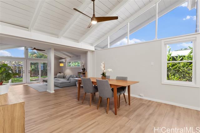 This single-level home in desirable Niu Valley blends modern upgrades with everyday comfort. Inside, enjoy a bright renovated open kitchen, remodeled bathrooms—including a primary suite with a walk-in shower—plus new LVP flooring, drywall, paint, and split A/Cs throughout. A separate guest Ohana suite with private entrance and bathroom adds flexibility for extended living or guests. Major improvements include completely new electrical wiring with dual 100-amp panels, replaced/re-lined sewer lines, a PV system with battery backup, and an EV charging port. A new roof and carport roof provide peace of mind for years to come. Outdoors, the yard offers fruit trees—starfruit, lemon, and coconut—along with a large storage shed. Set in the cool, quiet surroundings of Niu Valley, this move-in ready home combines convenience, thoughtful upgrades, and a lifestyle close to schools, shopping, dining, and freeway access. One or more photos have been enhanced. The information herein may contain inaccuracies and is provided without warranty or guarantee. Buyer must independently verify any information deemed material fact.