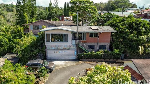 Rare opportunity to own a home in desirable Halawa Heights with no association fees! Longtime owner is selling this spacious 5-bdrm, 3-bath single-family home tucked away up a private, 50% OWNED driveway offering privacy, comfort, and sweeping views of Pearl Harbor and the valley. This unique property is perfect for MULTIFAMILY living or RENTAL, with a flexible layout that provides separate entrances upstairs and downstairs. Grandfathered to allow full kitchens in both the upstairs which is 3 bedrooms, 2 bathrooms, and the downstairs which is 2 bedrooms, 1 bathroom. Interior plumbing upgrades were done. Enjoy the private and serene setting and sense of retreat while still being conveniently close to shopping, dining, schools, and freeway access. The elevated position allows for cool breezes and beautiful sunsets from the picture window in your living room. With versatile living areas, this home is ideal for those seeking both functionality and tranquility. Don’t miss the chance to own a one-of-a-kind property that combines privacy, space, and stunning views in a highly desirable location. Owner is in the process of decluttering. After that is done, interior photos will be added.