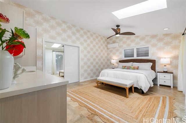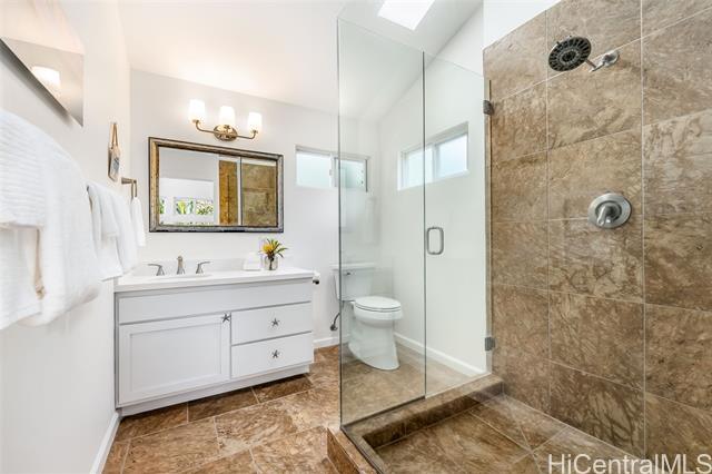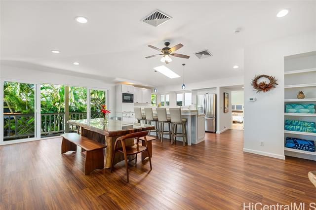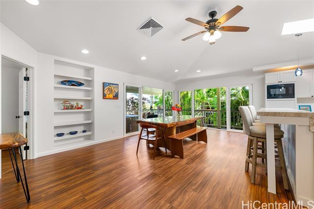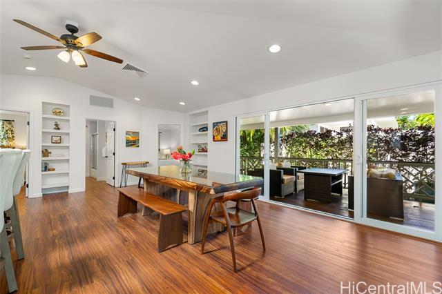 Incredible location near the beach in Lanikai! Tucked away with plenty of privacy, a cute yard with fruit trees, and great outdoor lanai for enjoying your own slice of tropical paradise. Many upgrades and bathroom remodels were just done in 2023, including a new roof with a 50 year warranty. Luxury Taj Mahal granite countertops in kitchen with updated hardware throughout. The main home area features central AC and 2 bedrooms have split AC. Sold fully-furnished and ready to move in! The Lanikai lifestyle can be yours with sunrise at the beach, turquoise water mid-day swims, the pillbox hiking trailhead nearby, and MidPac Country Club around the corner.