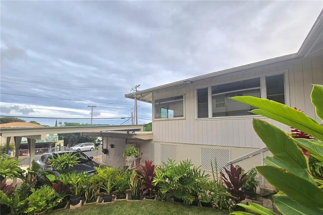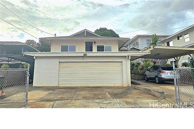 Unique Large home for family or multi-family use located in a highly desired Aiea. 1) Enter and be immersed in a very grand, wide open, vaulted ceiling, main living room w/open kitchen. Three bedrooms, one full bathroom w/a large sized primary bedroom w/its own full size bathroom. 2) Attached 3 bedroom section w/full bathroom and wet bar. 3) Side attached one bedroom unit or large storage area w/covered sink area. 4) Features a HUGE garage and storage area, Truely a "Man's Garage" w/alot of potiental that can be further improved and custom tailored. 5) HUGE carport 5) Sizable enclosed back patio area and front upper deck area. 6) Extra storage areas throughout the home. 7) A lot of parking. 8) Views of to Aloha Stadium. 9) Fruit trees in back: Pomelo (3), Avocado (1), Mango (1), Calamansi (2), Jack Fruit (1), Guanva (2). This home has has been loved as is and has a lot of further upgrade potential! Live in as-is or make improvements to take this home to an entire other level of enjoyment. (Square foot does not conform to tax records. Please do your own due diligence and inspections). 1st Open House Sunday 2pm-5pm Sunday 11/2/25.