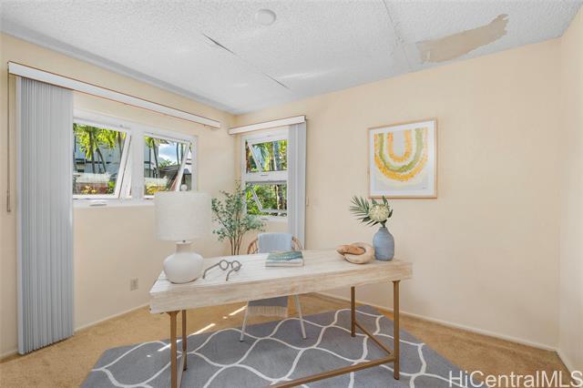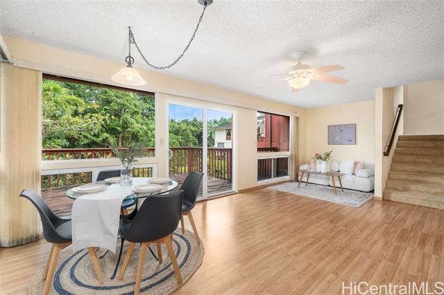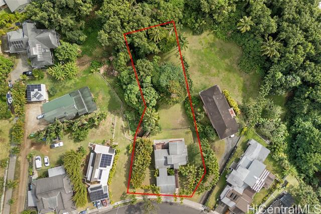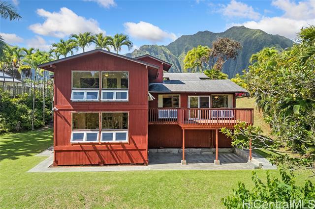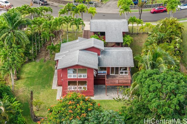 Tucked away in the desirable Crown Terrace neighborhood of Kaneohe, this charming split-level home rests on an extraordinary 21,726 sq. ft. lot surrounded by mature fruit trees and lush tropical landscaping. The expansive, mostly level yard offers endless possibilities for outdoor living, entertaining, or future expansion. Lovingly cared for by the same family for over 39 years, this home features 3 bedrooms and 2.5 bathrooms with flexible spaces to suit a variety of lifestyles. Enjoy serene views from nearly every room, plus a large covered workshop or storage area that adds both function and versatility. As part of the Haiku Knolls Association, residents enjoy access to a community playground, hard surface court, and basketball hoop. Ideally located near Windward Mall, shopping, dining, and with easy access to Likelike Highway. This rare property offers privacy, convenience, and endless potential to bring your renovation ideas to life. Truly a must-see.