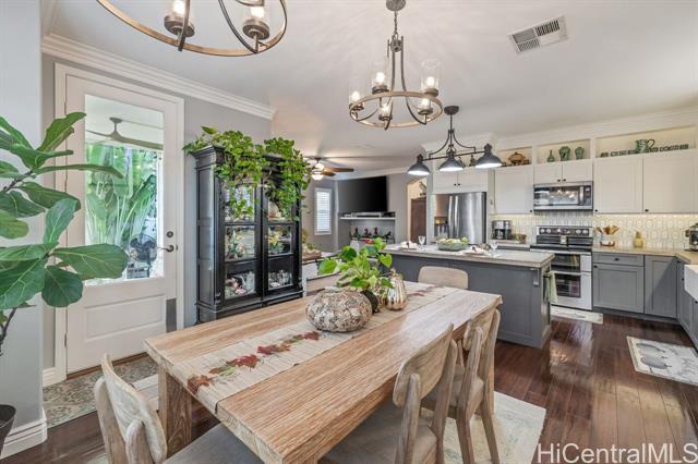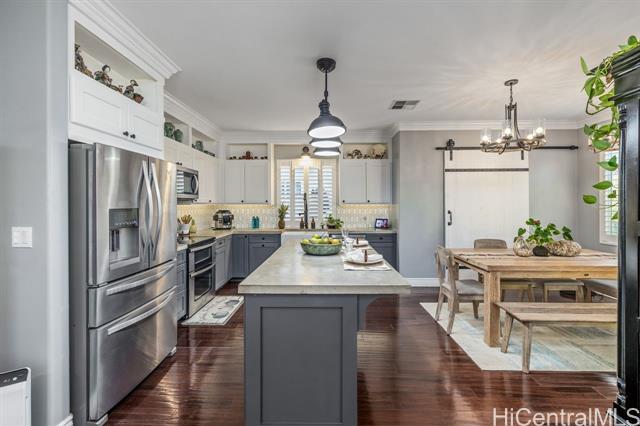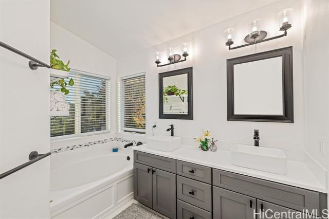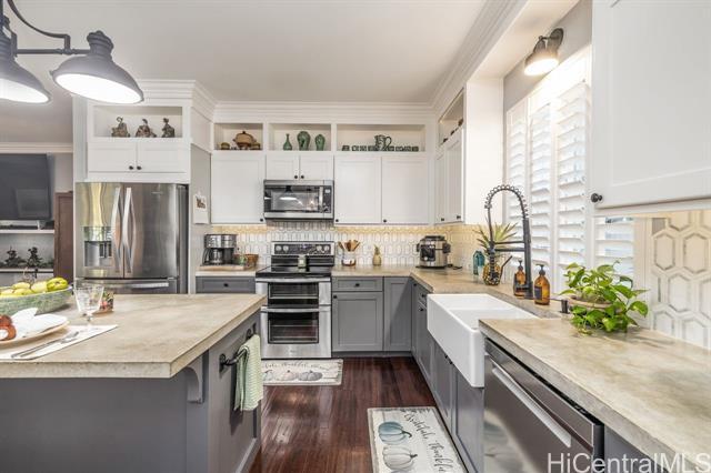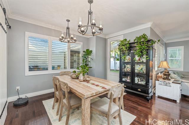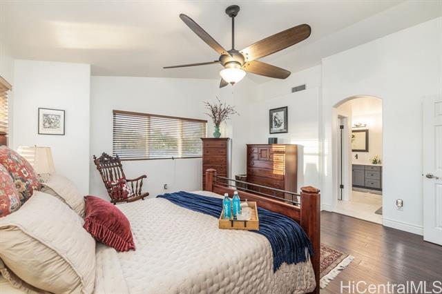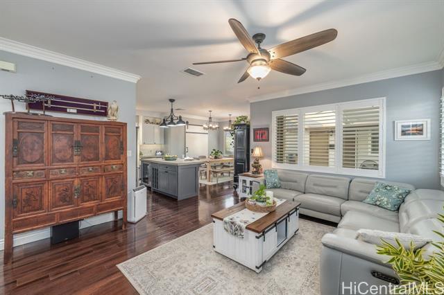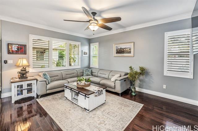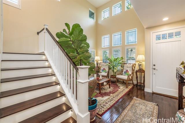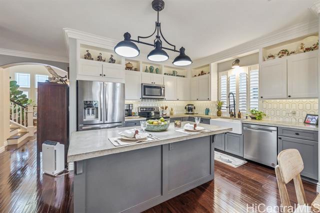 Welcome Home to this incredible sanctuary boasting 5 bedrooms and 4 full baths on a corner lot with a detached studio showcasing a full bath and wet bar in the prestigious Ocean Pointe neighborhood. This stunning home features spectacular features in every room from its custom chef inspired kitchen to its meticulous landscaped private backyard oasis. No expense was spared or overlooked in this sophisticated modern day masterpiece. The primary bedroom has a serene spa like bathroom with a with his and hers sink. The hand scraped hardwood floors with wood baseboard throughout. Thoughtfully designed with an expansive 2,436 square feet of interior living space, 48 solar panels and 3 Tesla Batteries. Minutes away from Ka Makana Ali'i mall, beaches, schools, world famous golf courses and dining. Come see for yourself what everyone is talking about. For those searching for a stunning retreat, Welcome home.