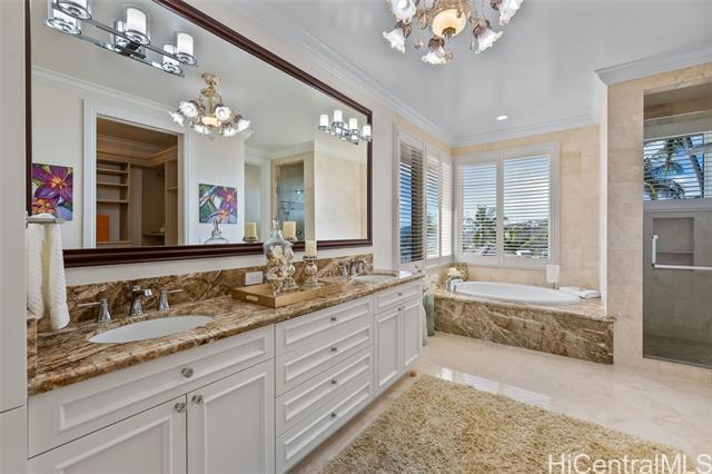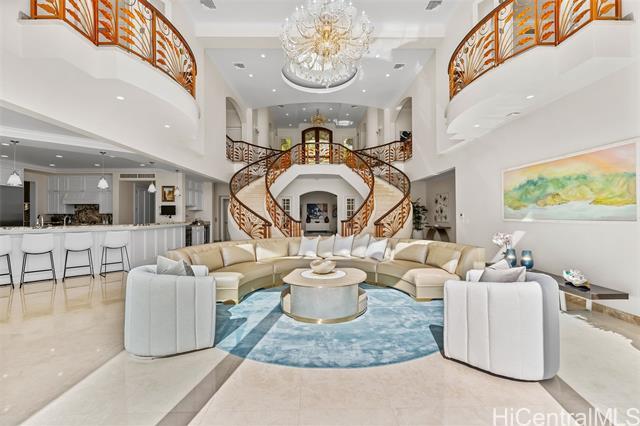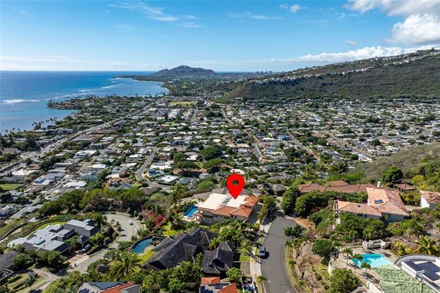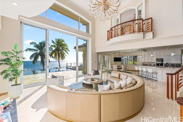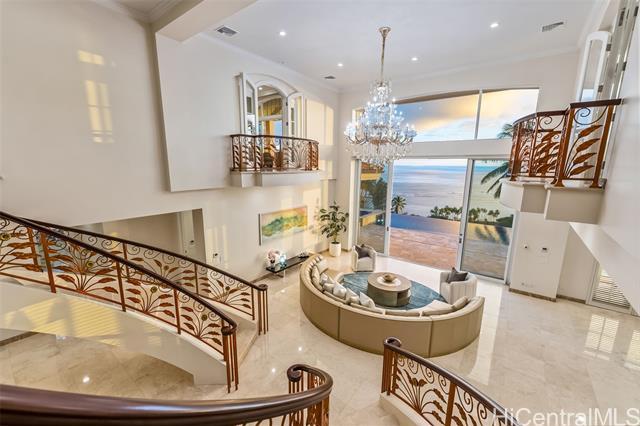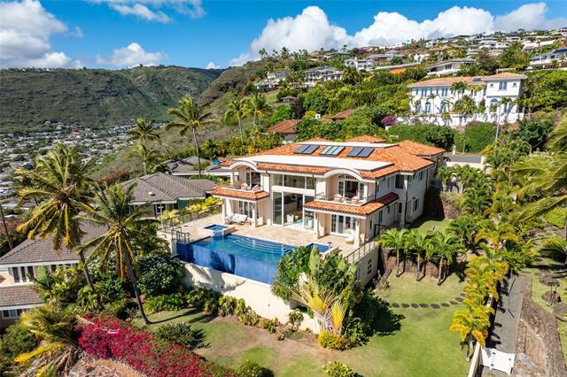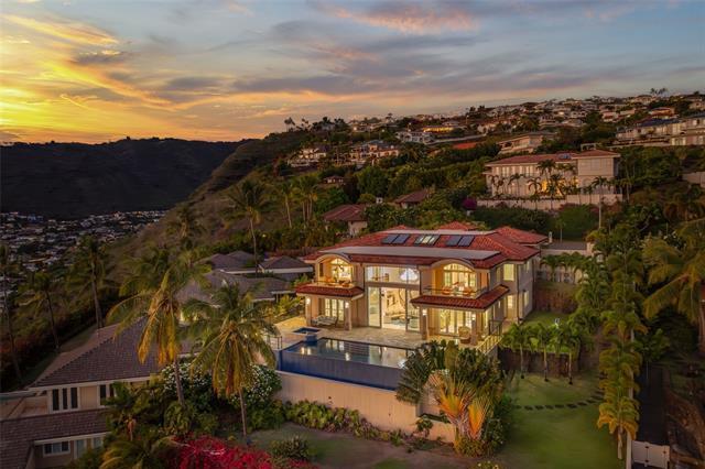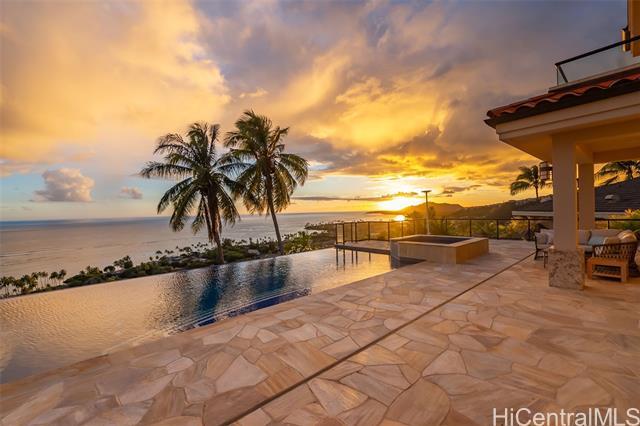 NEW LISTING!! Experience refined island living in this grand 7-bdrm, 6 full, 2 half-ba estate on a rare half-acre parcel within the desirable gated community of Hawaii Loa Ridge. Perfectly positioned to capture sweeping, unobstructed ocean and coastline views from Diamond Head to Koko Head, this residence offers exceptional privacy, serenity, and breathtaking vistas. Boasting over 6,000 sq ft, the home showcases exceptional craftsmanship and luxurious finishes. A dramatic double staircase welcomes you into the expansive living room, where soaring ceilings and walls of glass frame the stunning views and open to the infinity-edge pool and expansive deck, ideal for outdoor dining, entertaining, and enjoying Hawaii’s iconic scenery. This 2017 built residence features six en-suite bdrms, an impressive entertainment room, and a gourmet kitchen equipped with top-of-the-line Miele stainless steel appliances. This home offers an elegant setting for both intimate meals and grand entertaining. Highlights include two separate garages, thoughtfully designed outdoor green spaces, and a premier end-of-cul-de-sac location. This exceptional estate embodies privacy, elegance, and refined luxury.