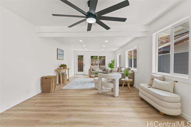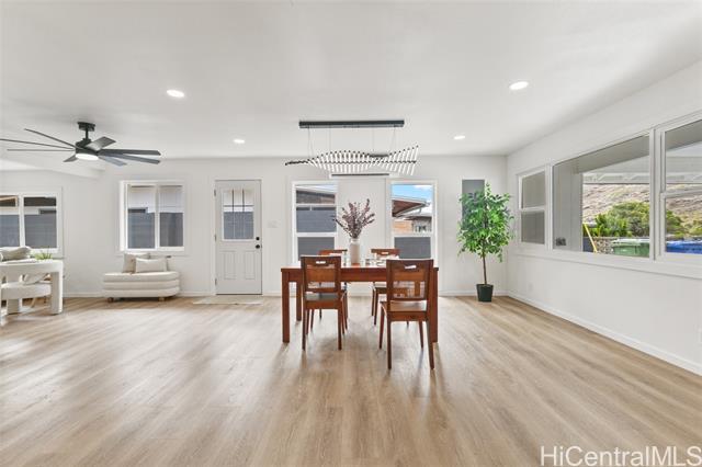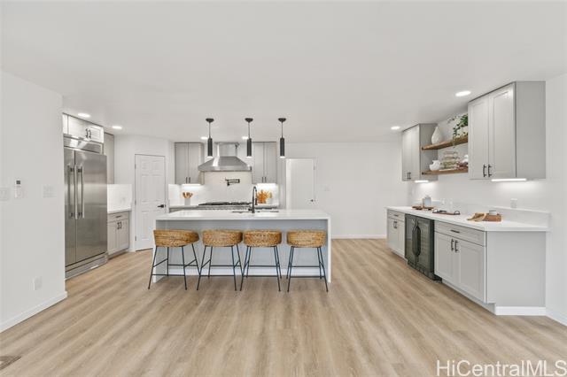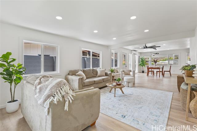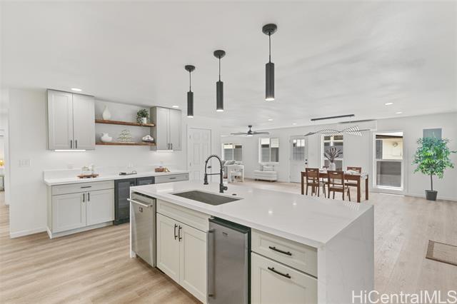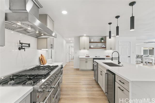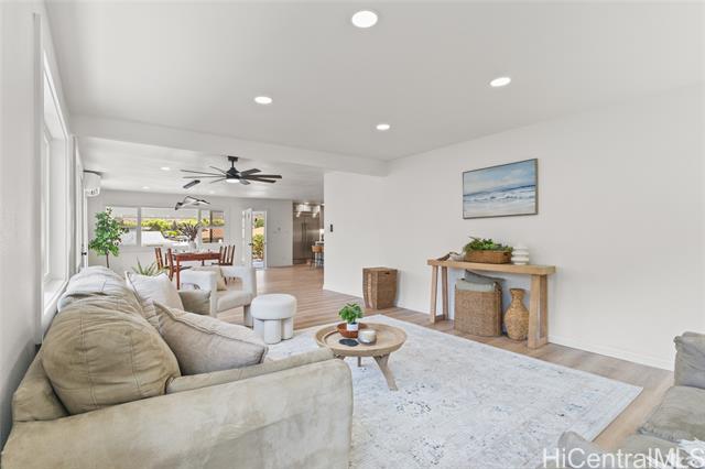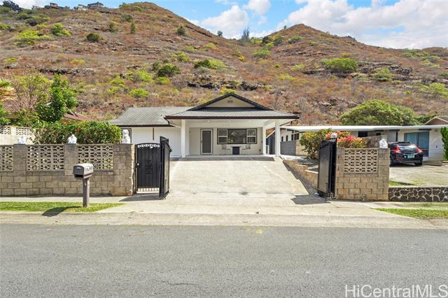 Wonderful location on lower Hahaione Valley near schools, shopping, beaches, parks, hiking, close to town. This tastefully updated home boast 3 br, 2 bath with an office/den that could also be used as a 4th bedroom if needed. The large open living spaces flow seamlessly throughout the kitchen dining and living room. Enjoy new shaker cabinets, quartz counters, and luxury vinyl plank flooring. The chef inspired kitchen has so much to love, from the duel fuel 48 in double oven with 6 different (gas) burners to the oversized fridge, to the wine fridge, or even the ice maker, and don't forget the corner pantry, truly an entertainers dream. The fully fenced enclosed yard is low maintenance and even has its own working pond with a waterfall.