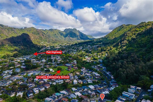 Must See! Recently update 4 bedroom 2.5 bath charming house is located in a quiet cul-de-sac in a sought after Dowsett neighborhood and overlooks the Nuuanu Valley with a breathtaking mountian views. Tastefully updated interior include new floors, windows, paint, kitchen/bathroom fixtures and appliances that make the home very modern yet warm and cozy. One bedroom with full bath has 2 separate entrances for rental potential and the property features spaciaous backyard and ample storage and closet space. Easy access to Pali Highway and close proximity to shopping, parks, golf courses, dining & entertainment and highly rated schools. Do not wait, come see for yourself.