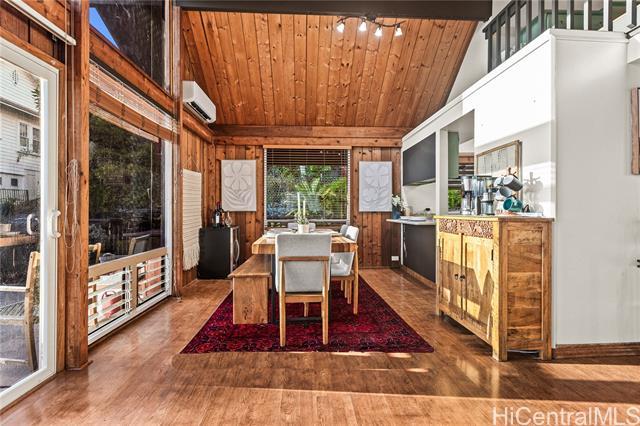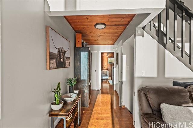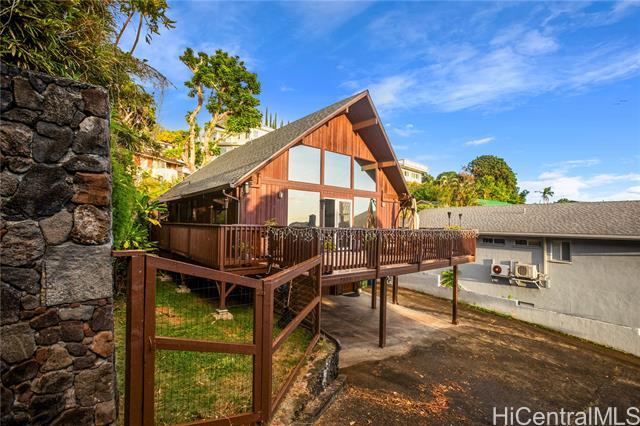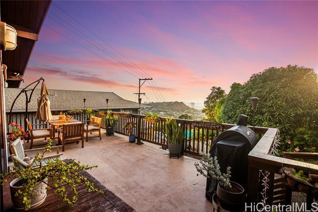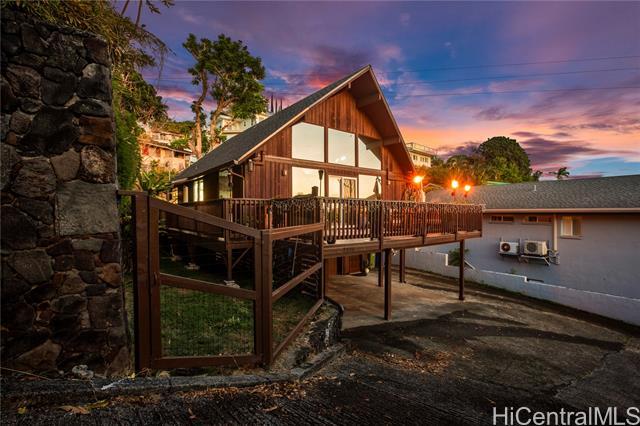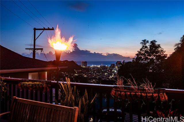 Nestled in the coveted Pacific Heights neighborhood of Honolulu, this impeccably maintained 3-bed/2-bath home offers cozy mountain living with breathtaking views of the coastline and city beyond. Step inside to discover rich hardwood and high ceilings in the light-filled main living area. The kitchen features a new sink and appliances, freshly-painted cabinetry and a breakfast bar that flows seamlessly into the dining area. The roomy lanai gives you space to eat and relax while enjoying stunning Ocean, City and Punchbowl views. The owners have meticulously cared for and updated the home, installing 16 fully paid-off solar panels, fully replacing the roof, gutters, and water heater, renovating in both bathrooms, adding updates to the kitchen, extending the lanai to wrap to the side entrance, building an enclosed workshop area underneath the lanai, building a stand alone shed on the side of the home, and adding a fence enclosing the yard--all in the last three years. Just a couple minutes from downtown Honolulu, popular dining and boutique shops, and easy freeway entry, enjoy the balance of retreat-style hillside living together with urban convenience and proximity.