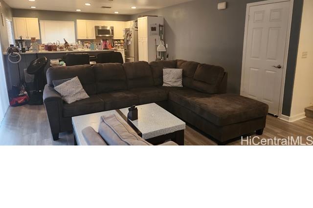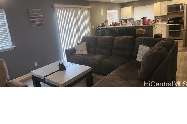 Well maintained, Single Family Home with 3 bedrooms, 2.5 baths at the gated community of Seascape at Makakilo. Split level entrance with main living, dining, kitchen and half bath downstairs and bedrooms and full baths upstairs. Primary bedroom, crown molding with renovated primary bath, Brazilian Cherry laminate flooring throughout main living and bedrooms with tile flooring in kitchen and baths. Kitchen has stainless steel appliances with Duan Oven. Main living space (in-wall speaker system) open to dining and kitchen with sliding doors opening up to small wrap around yard, cool breezes flow through during cool months and Central AC for warmer weather, Leased 26 Photovoltaic panels with 2 LG batteries $203.50 per month Eco smart tank-less water heater 100% efficiency and endless hot-water. Exterior painted 2019 and interior painted July 2020.